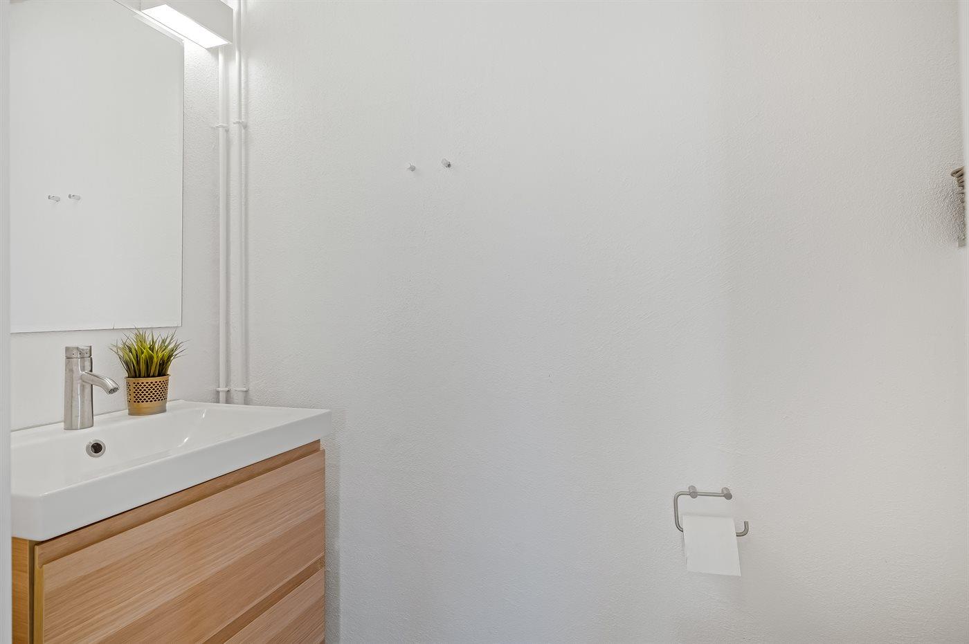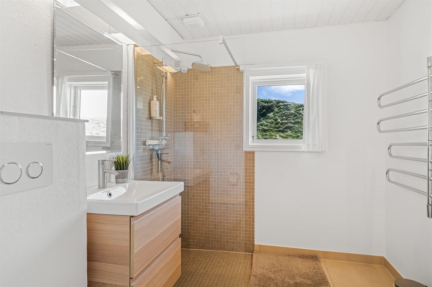 Er is 1 badkamer met douchehok en 2 toiletten, waarvan 1 gastentoilet. Er is vloerverwarming in 1 badkamer.