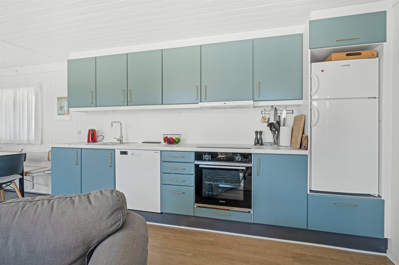 De keuken is uitgerust met koelkast Er zijn 4 keramische kookplaten, heteluchtoven en vaatwasser.