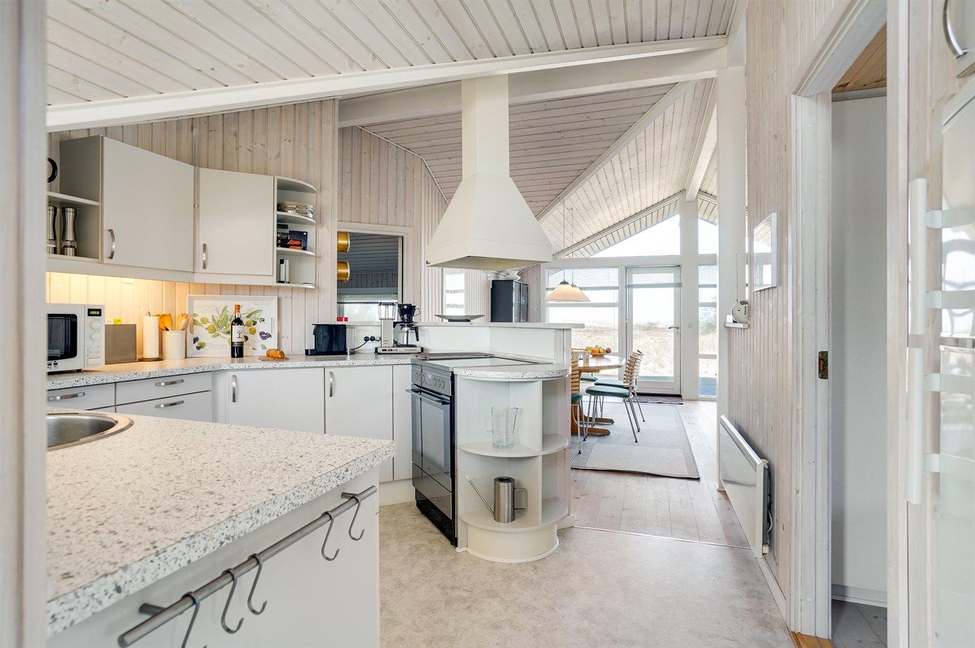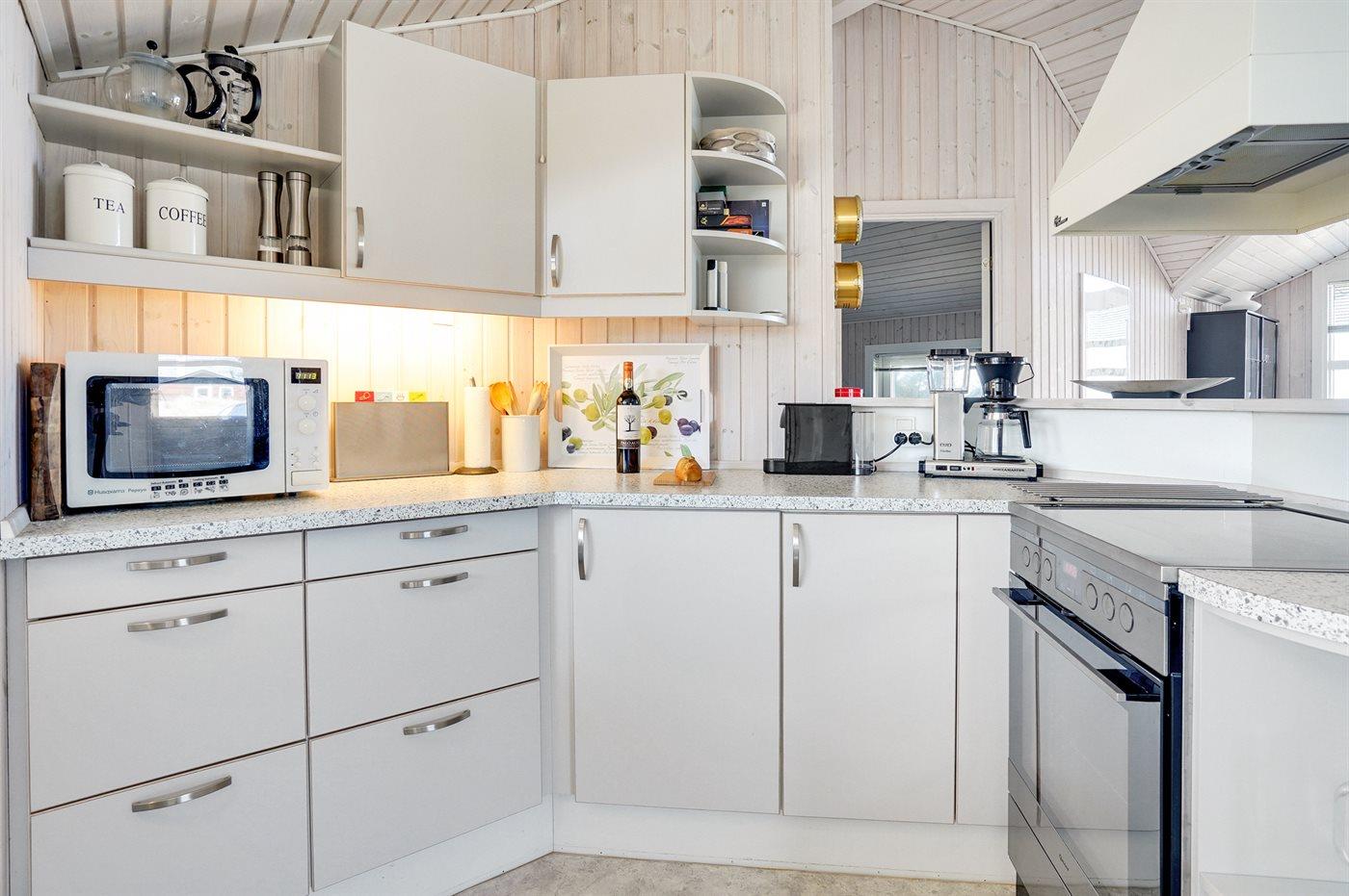 De keuken is uitgerust met koelkast Er is 4 inductiekookplaten, heteluchtoven, magnetron en vaatwasser.