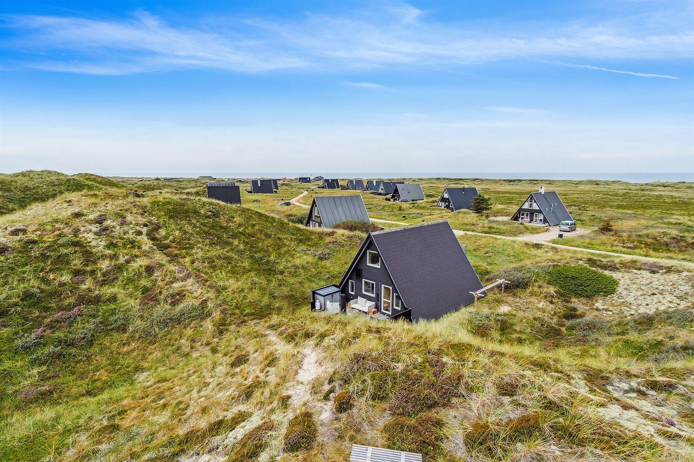 Gezellig vakantiehuis in Rødhus met zeezicht, modern comfort en ruime buitenruimte op duingrond.