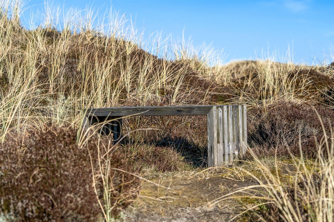 De vakantiewoning is gelegen op een 3800 m² groot Duingrond. Afstand tot de zee 350 m. Dichtstbijzijnde winkel 6000 m. Er is een golfbaan op een afstand van 5000 m. Bij de vakantiewoning hoort terras. Balkon. Zandbak. Barbecue. Parkeerplaats bij het huis.