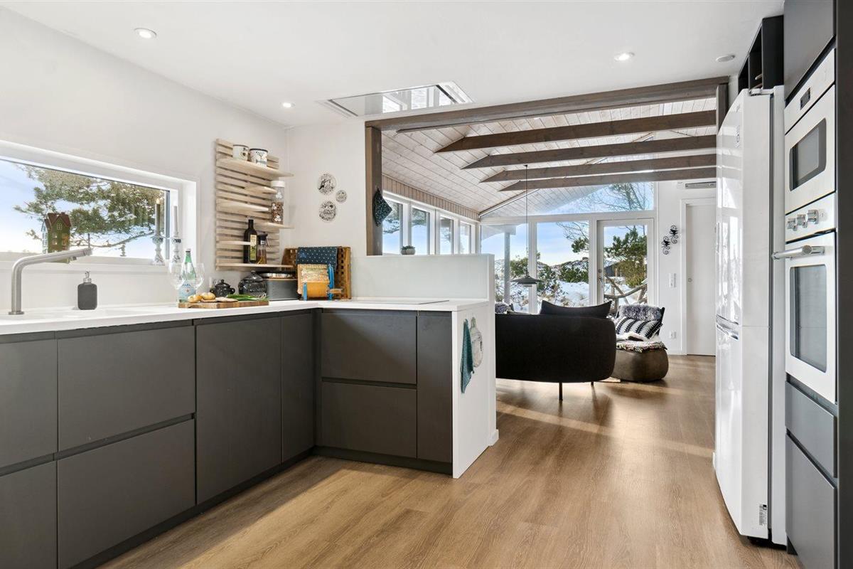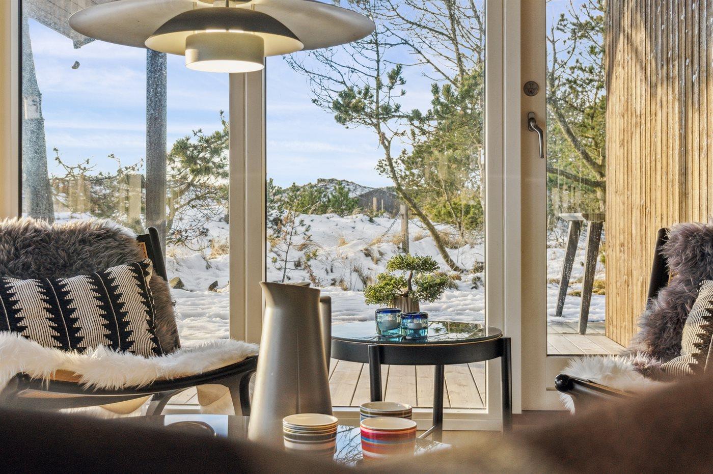 Moderne vakantiewoning uit 2022 met houtkachel, terras en oplader voor elektrische auto, dicht bij zee in Rødhus.