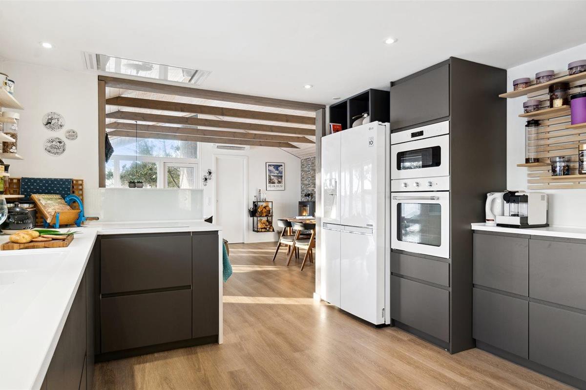 De keuken is uitgerust met amerikaanse koelkast Er is 4 inductiekookplaten, heteluchtoven, magnetron en vaatwasser.