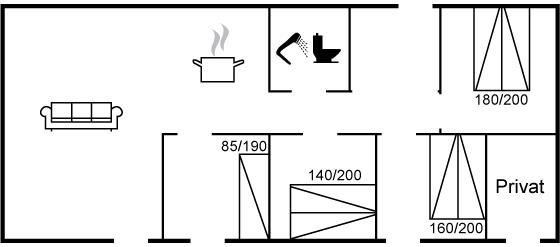 Er zijn in totaal 3 slaapkamers. De slaapplaatsen zijn als volgt verdeeld: 6 slaapplaatsen in tweepersoonsbedden.