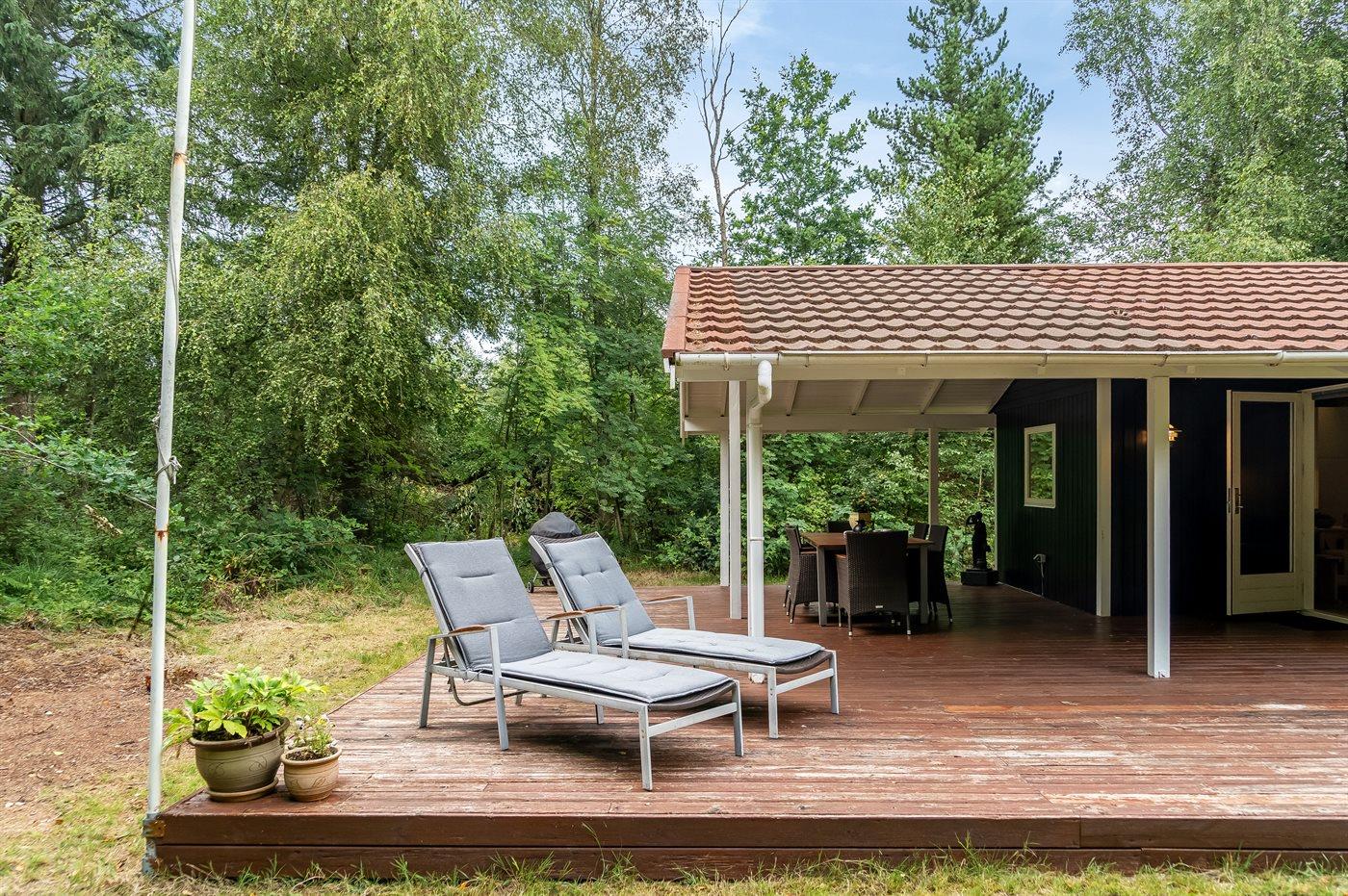 De vakantiewoning is gelegen op een 2463 m² groot grond in bos/park. Afstand tot de zee 3000 m. Dichtstbijzijnde winkel 6000 m. Bij de vakantiewoning hoort terras. Daarnaast is er een overdekt terras. Parkeerplaats bij het huis.