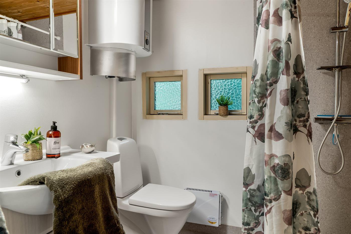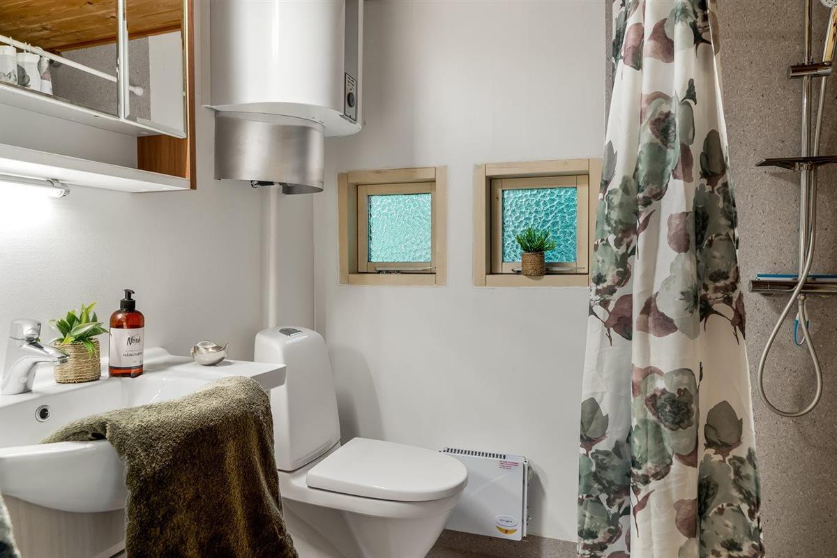 Er is 1 badkamer met douchehok en 1 toilet. De sauna biedt de gelegenheid tot ontspanning.