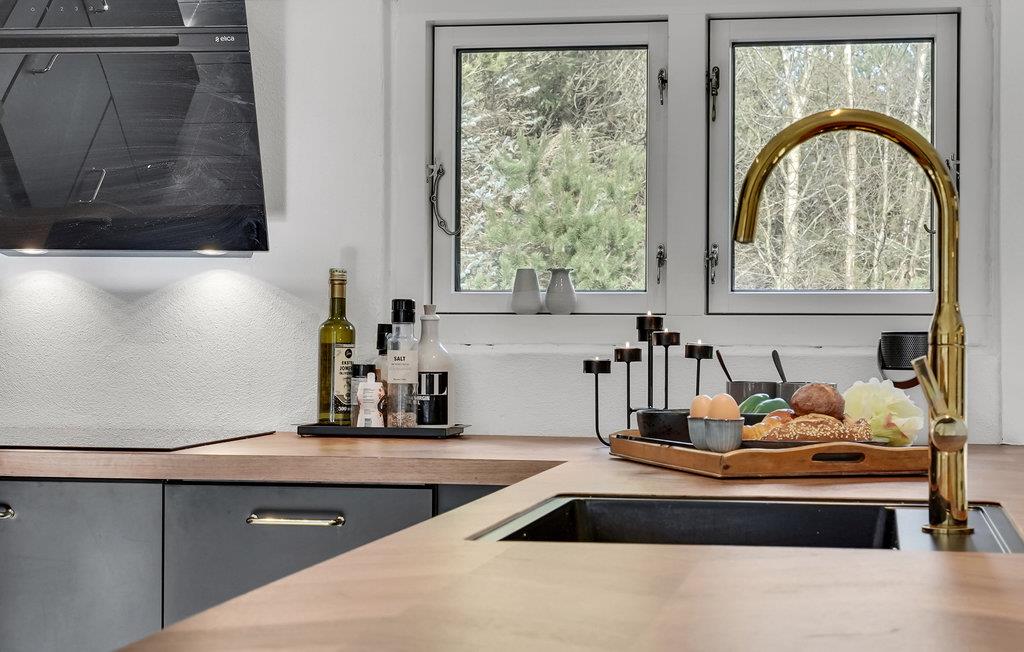 Op een rustige locatie, omgeven door bomen en dicht bij een bos en strand, verwelkomt dit prachtige vakantiehuis u en uw uitgebreide familie. Samen met uw uitgebreide familie kunt u zich hier thuis voelen en gewoon uw ziel laten bungelen. Het comfortabele en smaakvolle meubilair en de hoogwaardige inrichting stralen, samen met de hoge plafonds, een geweldige feel-good sfeer uit die uitnodigt tot samen koken, eten, spelen of gewoon ontspannen. Het ruime houten terras is ook een geweldige plek om buiten van de zon te genieten en warme zomeravonden af te sluiten met een barbecue.