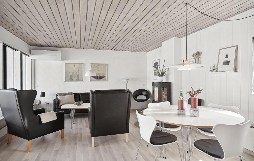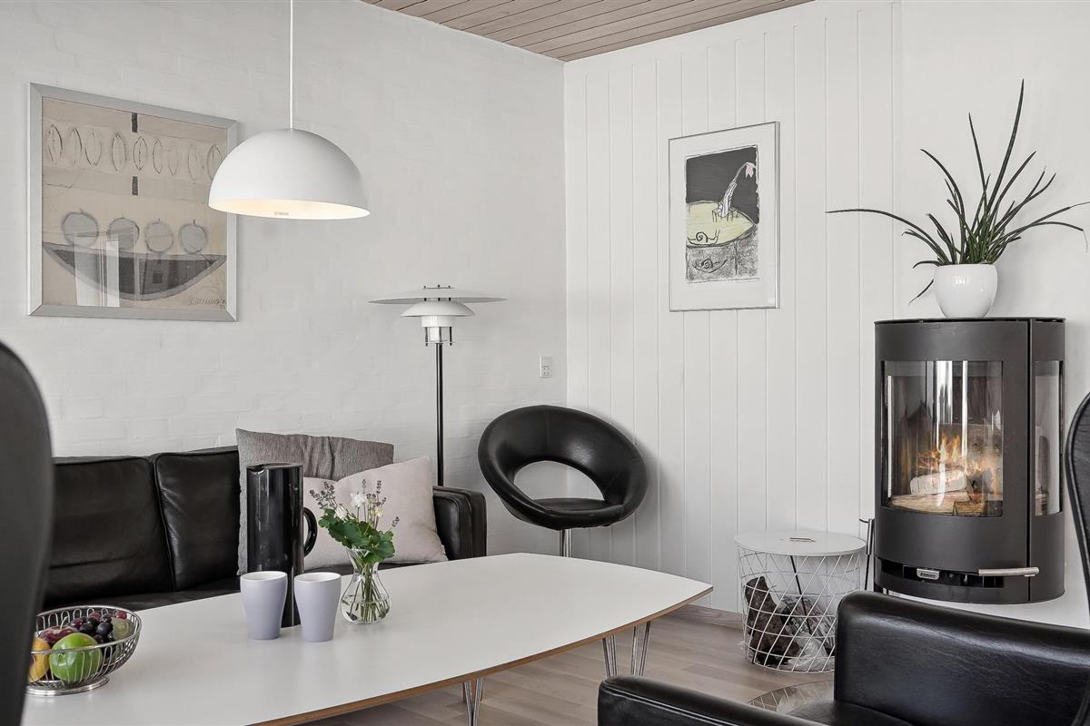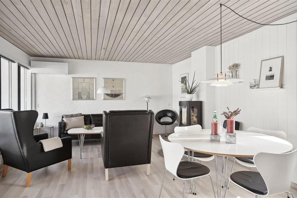 Je solide vakantiehuis in Rødhus is volledig gerenoveerd en heeft een betegelde badkamer met vloerverwarming en houten vloeren in de rest van het huis. De lichte woonkamer met smaakvolle inrichting is open en staat in verbinding met de keuken. Bereid hier je eigen vakantiemaaltijden of bezoek het nabijgelegen gezellige café, waar je heerlijke maaltijden kunt krijgen voor ontbijt, lunch en diner. Vanuit de woonkamer heb je toegang tot een mooie, op het zuidwesten gelegen patio, die gedeeltelijk overdekt is.