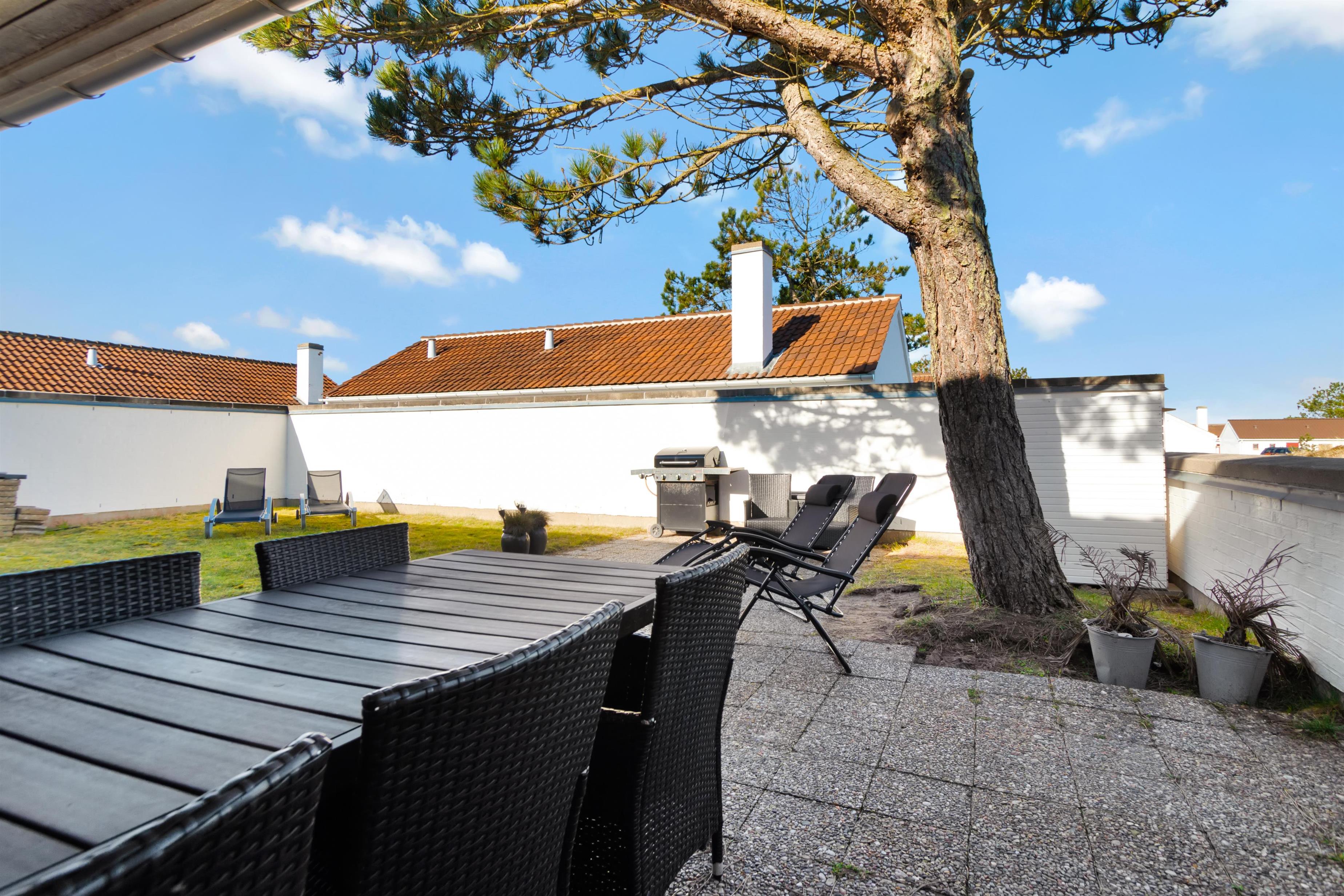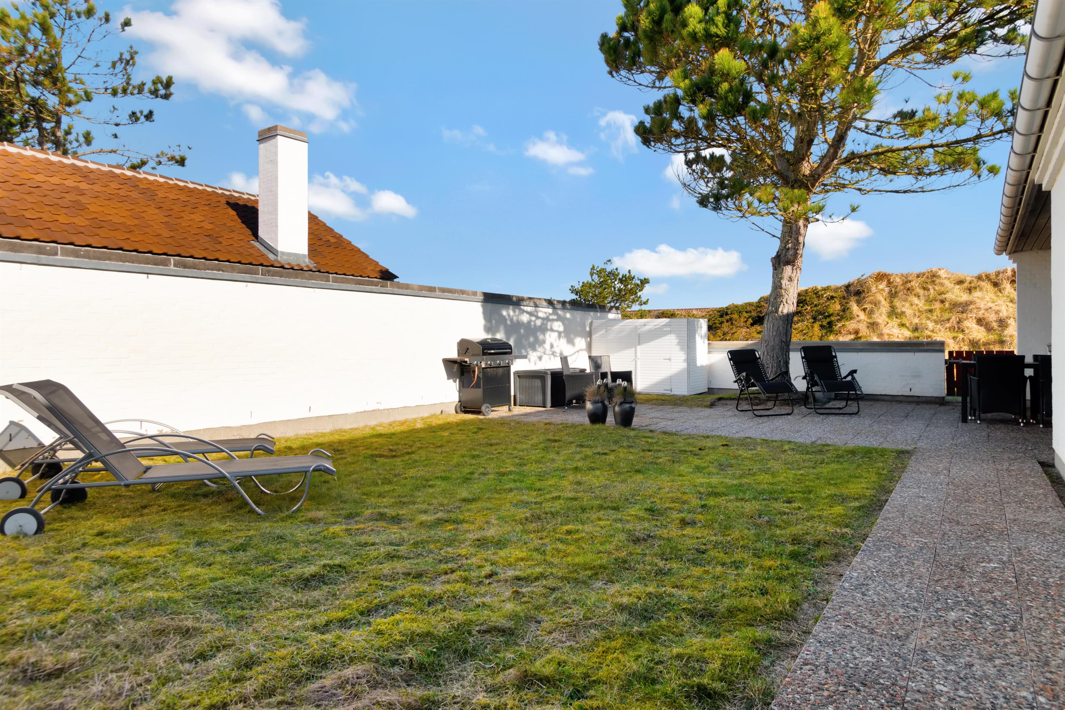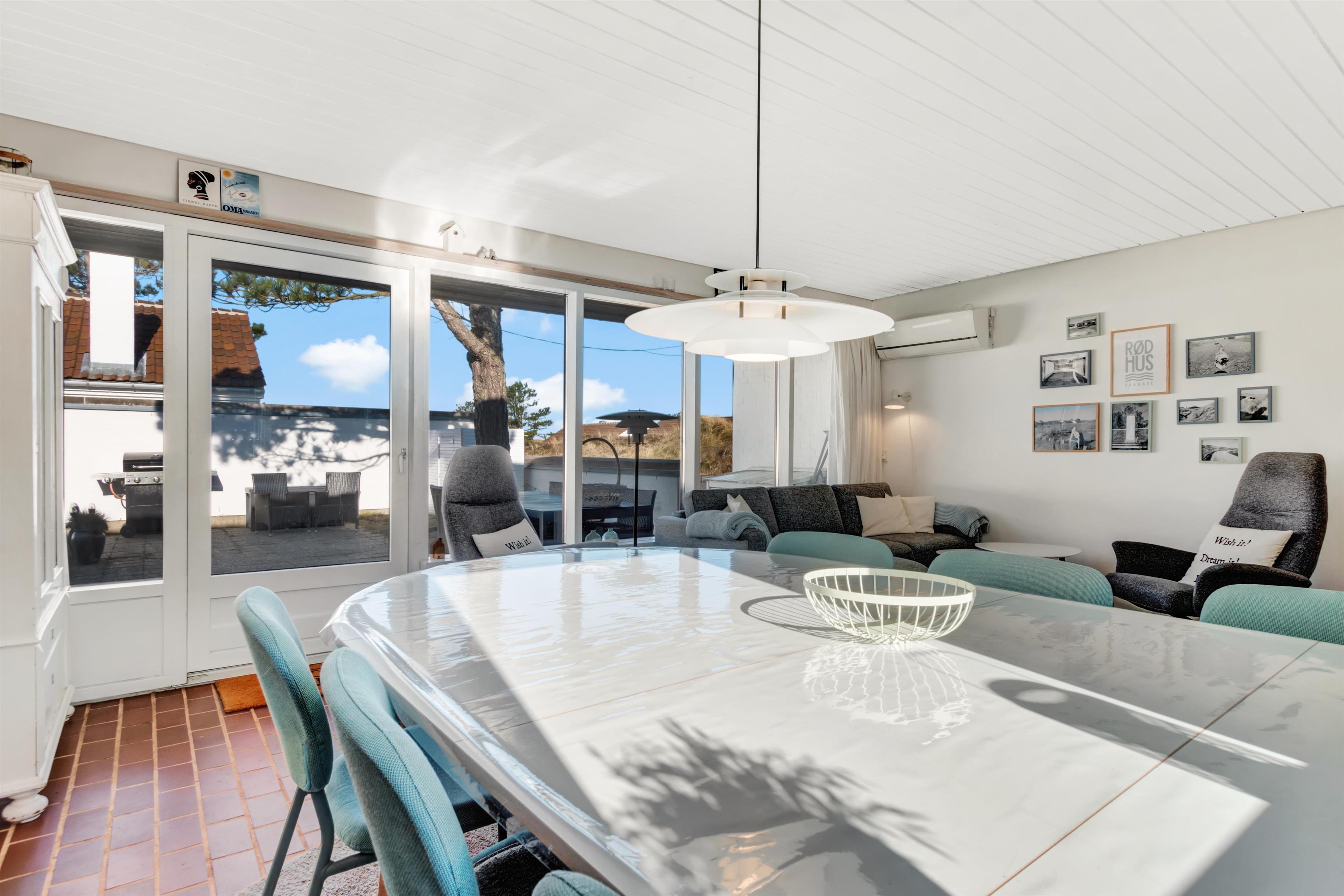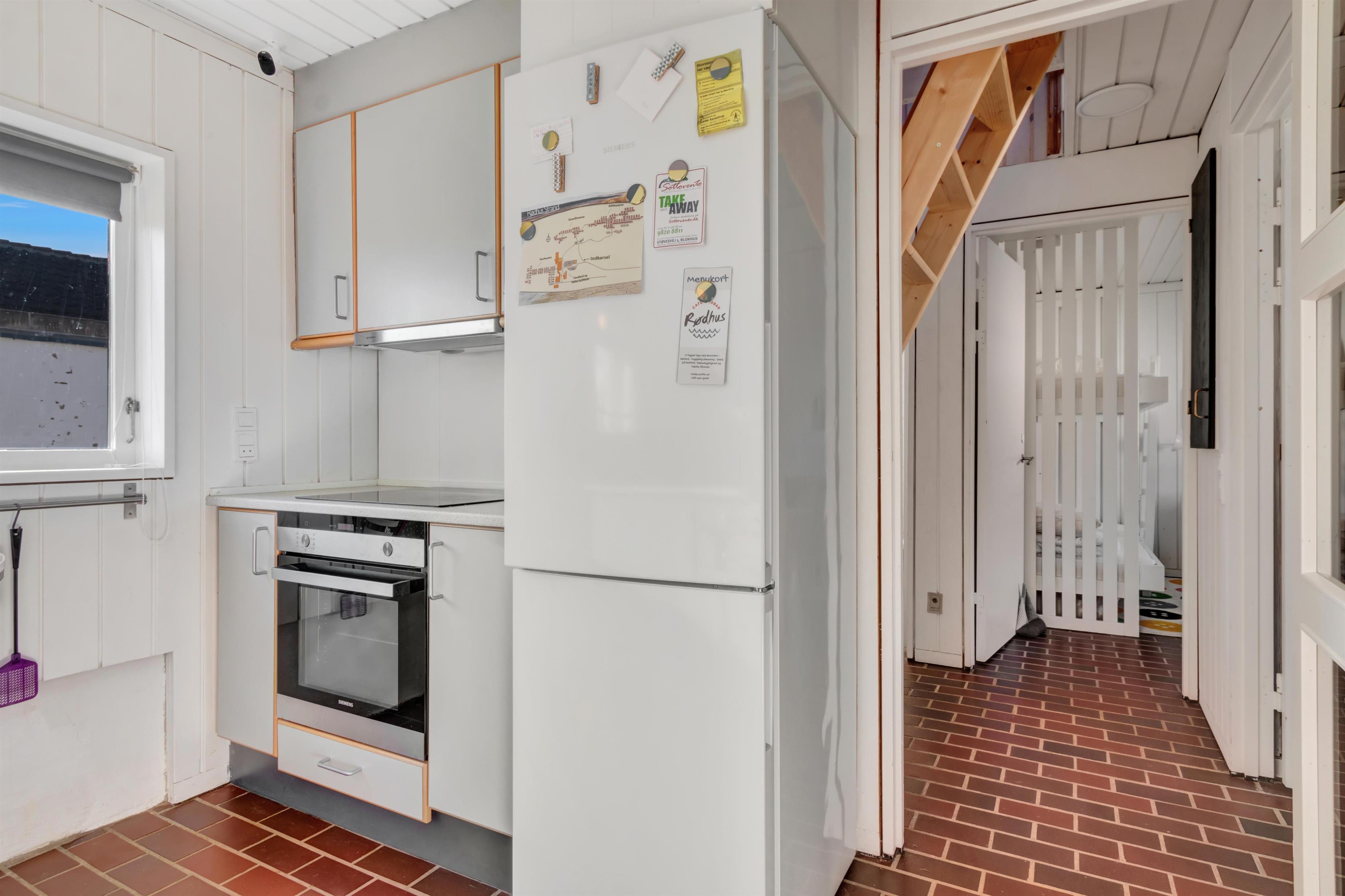 Continuing straight ahead, you enter the house's second bedroom, where there are two single beds. From the hallway, you access the holiday home's beautiful kitchen/dining area and living room, which is stylishly furnished and super cozy with a wood stove and access to the lovely, secluded terrace and garden. The house is smoke-free, and youth groups are not allowed. Remember to order any needed linen packages when booking to avoid additional administration fees.