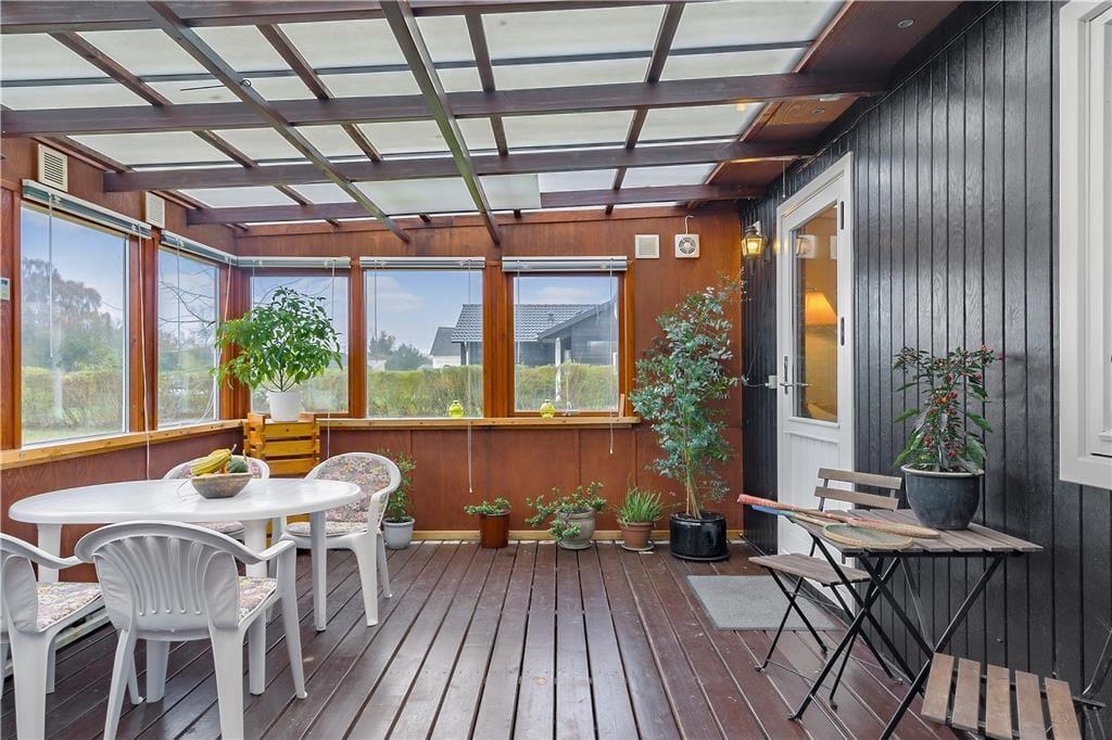 Sie betreten das Ferienhaus durch den Wintergarten über die überdachte Terrasse.