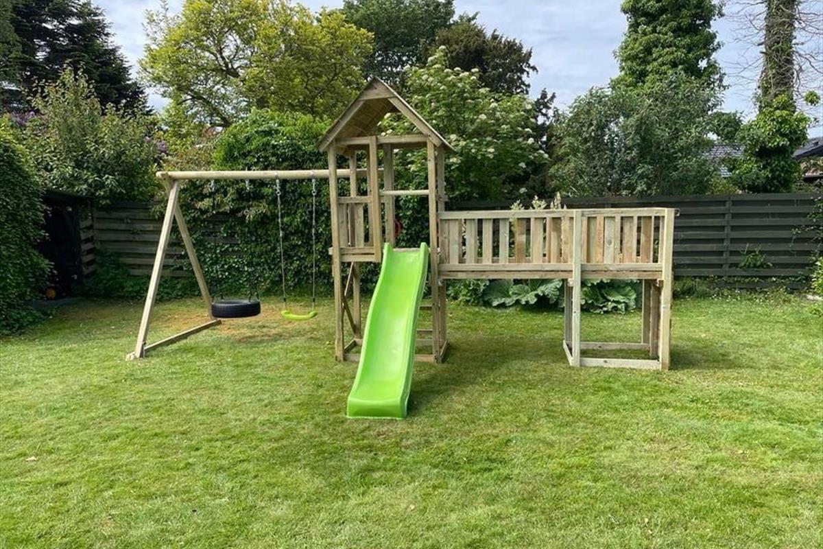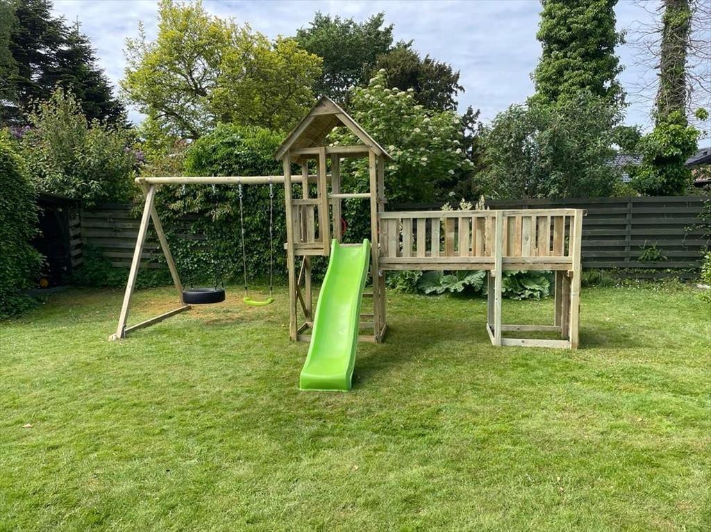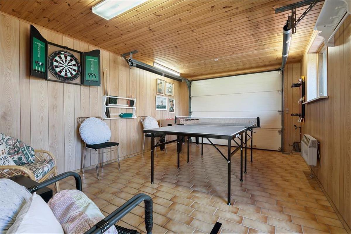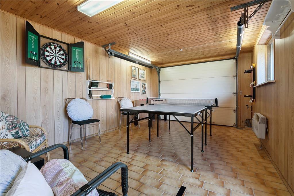 Der gute Aktivitätsraum ist von der Terrasse aus zugänglich. In diesem sorgen eine Tischtennisplatte, ein Tischkicker und eine Dartscheibe für viel Spaß und Abwechslung bei allen Familienmitgliedern. Im Aktivitätsraum ist auch eine zusätzliche Gefriermöglichkeit platziert. Es gibt einen Spielturm mit Schaukel und Rutsche. Es gibt eine Feuerstelle im Garten.