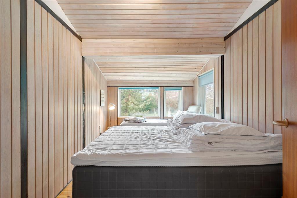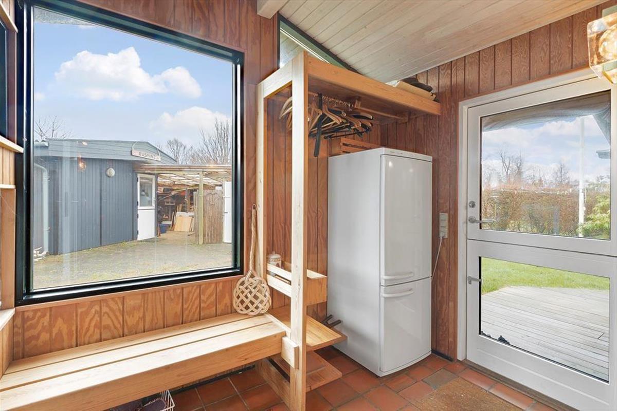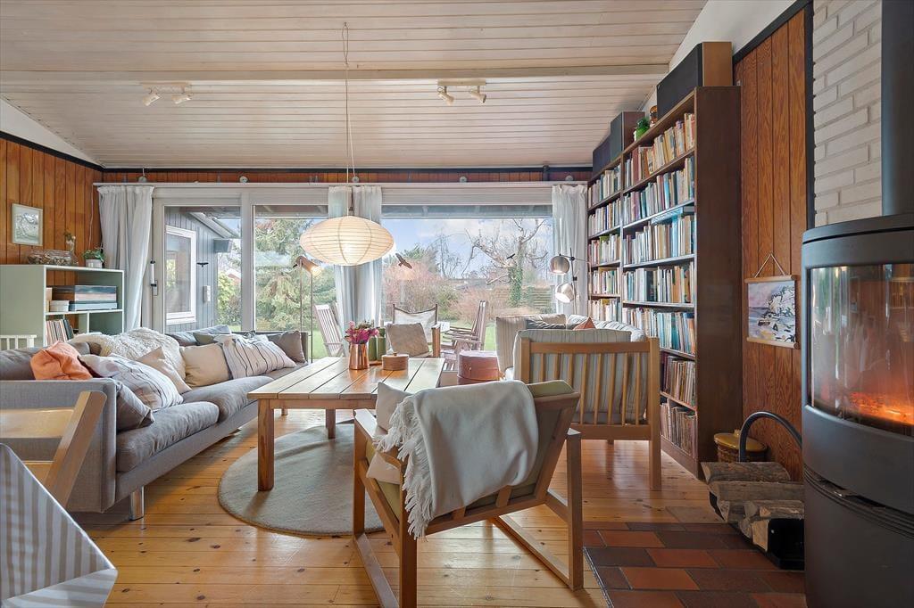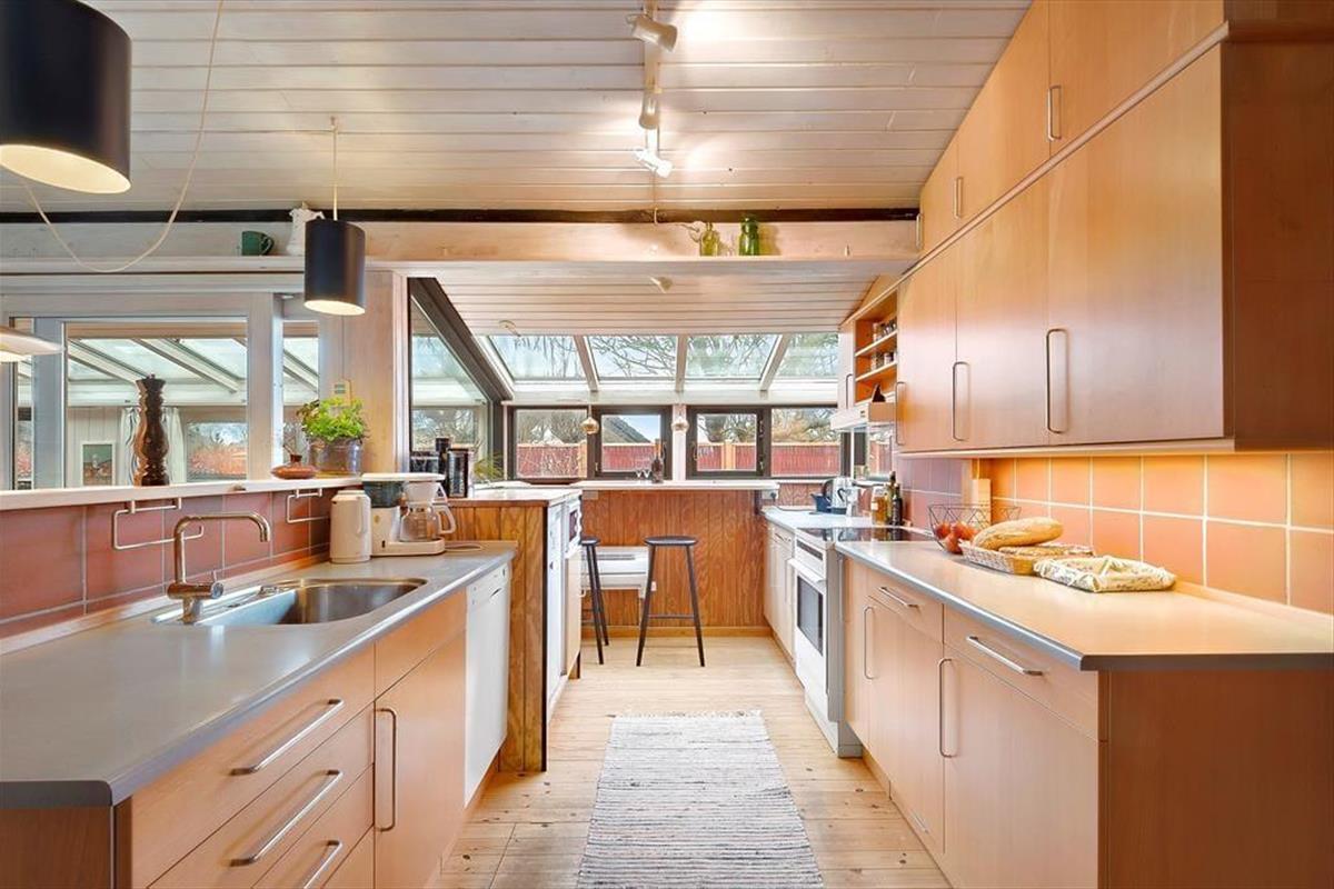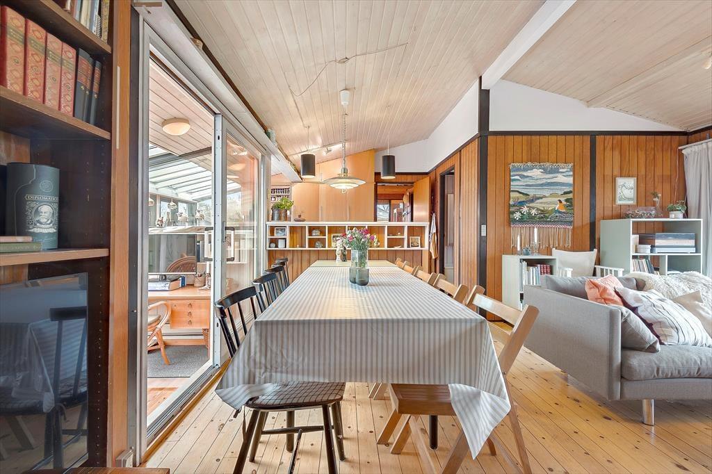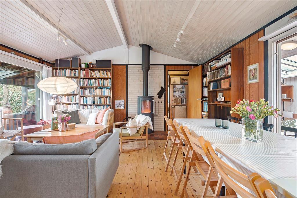 Hier betreten Sie eine kleine Eingangshalle mit Fliesenboden und dann beginnt der Urlaub in diesem schönen Sommerhaus aus den 70er Jahren. Das Haus verfügt über eine offene Küche in Verbindung mit dem Wohnzimmer und einen schönen Essbereich in einem gemütlichen kleinen Gartenzimmer mit viel Licht. Hier ist für Sie alle Platz und auch der Vierbeiner der Familie darf nicht fehlen. Im Wohnzimmer können Sie es sich gemeinsam gemütlich machen und hier können Sie TV streamen. Oder Sie genießen ein Glas Wein und hören dem Knistern des Holzes im Holzofen zu. Vom Wohnzimmer aus hat man Zugang zur Terrasse und zum Garten. Das Haus ist mit 4 Schlafzimmern und 2 Badezimmern ausgestattet, sodass Sie nicht warten müssen, bis der Teenager sein Bad für den Tag beendet hat, und eine gute Gelegenheit besteht, sich mitten am Tag zurückzuziehen und ein Nickerchen zu machen.