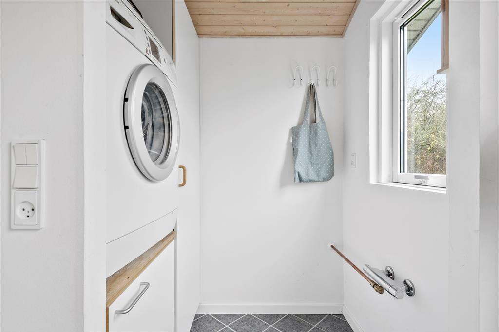 Sie betreten dieses Ferienhaus durch den Eingangsbereich, der mit einer Waschmaschine ausgestattet ist.