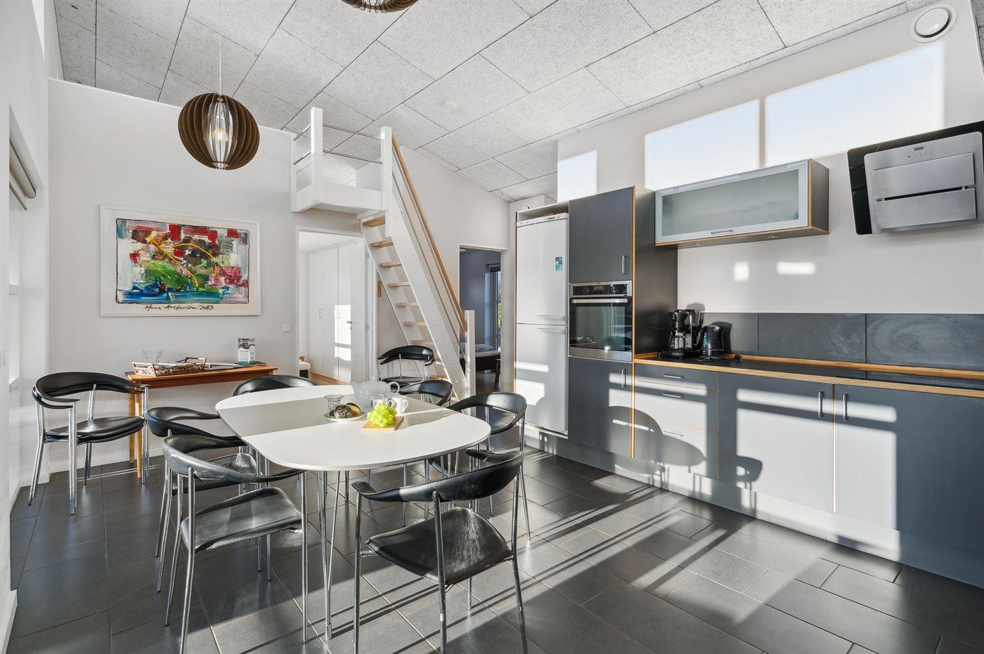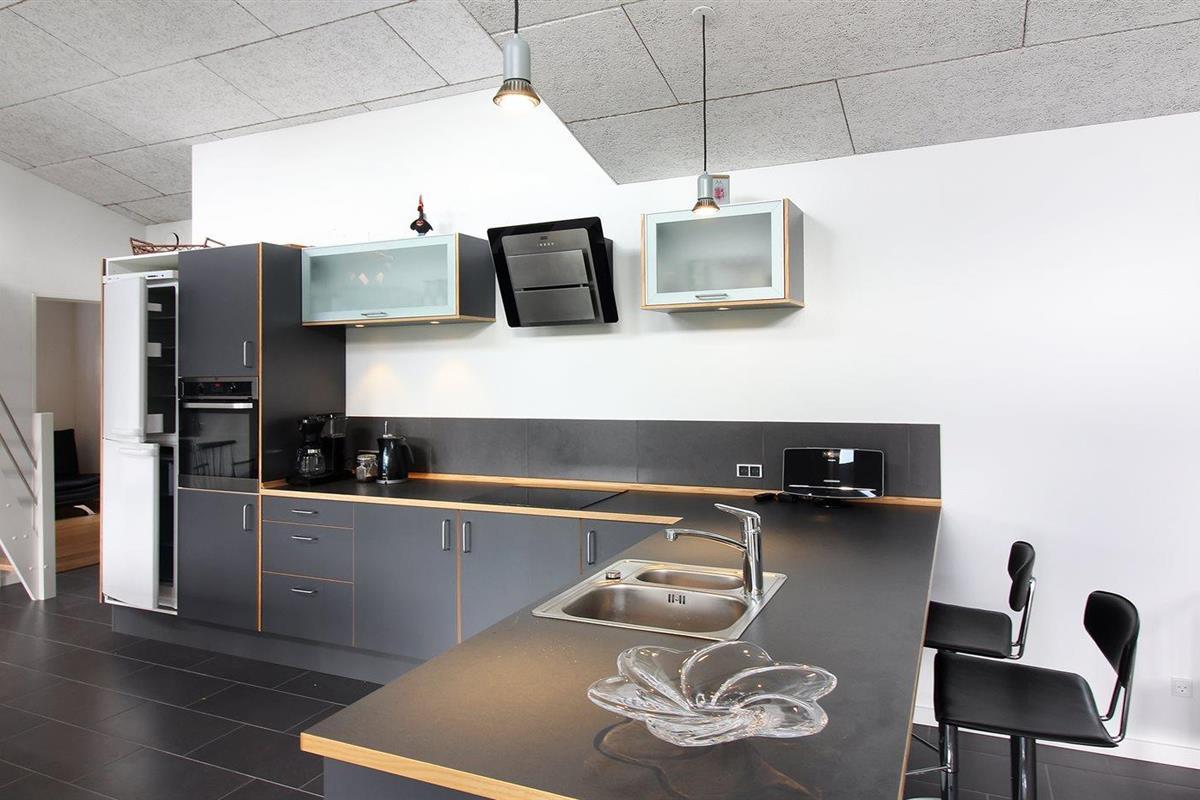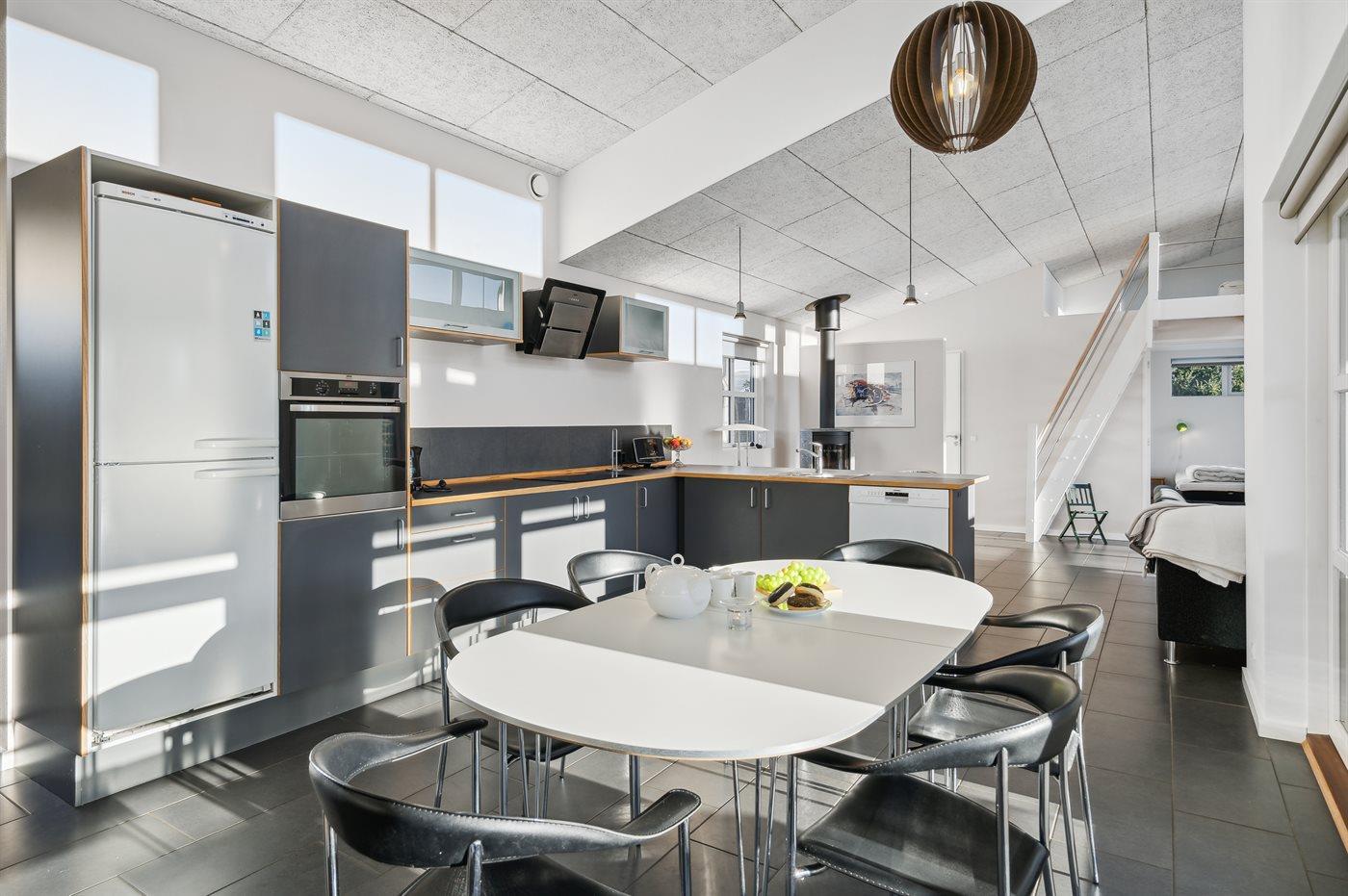 De keuken is uitgerust met koelkast Er is 4 inductiekookplaten, heteluchtoven, magnetron en vaatwasser.