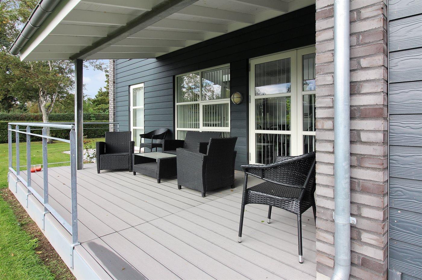 De vakantiewoning is gelegen op een 804 m² groot aangelegde tuin. Afstand tot de zee 200 m. Dichtstbijzijnde winkel 1000 m. Bij de vakantiewoning hoort 50 m² terras. Daarnaast is er een 25 m² groot overdekt terras. Gereedschapsruimte. Parkeerplaats bij het huis.