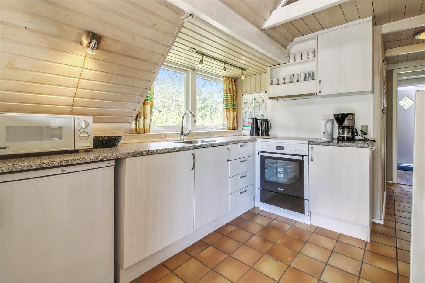 De keuken is uitgerust met koelkast Er zijn 4 keramische kookplaten, heteluchtoven, magnetron.