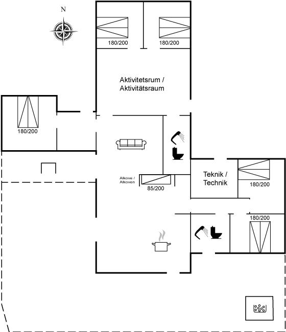 In de vakantiewoning is aanwezig 7 smart-tv's. Radio met CD en Bluetooth. Playstation5. Tenminste 4 deense zenders. 1-3 sweedse zenders. 1-3 noorse zenders. Tenminste 4 duitse zenders. Draadloos internet.