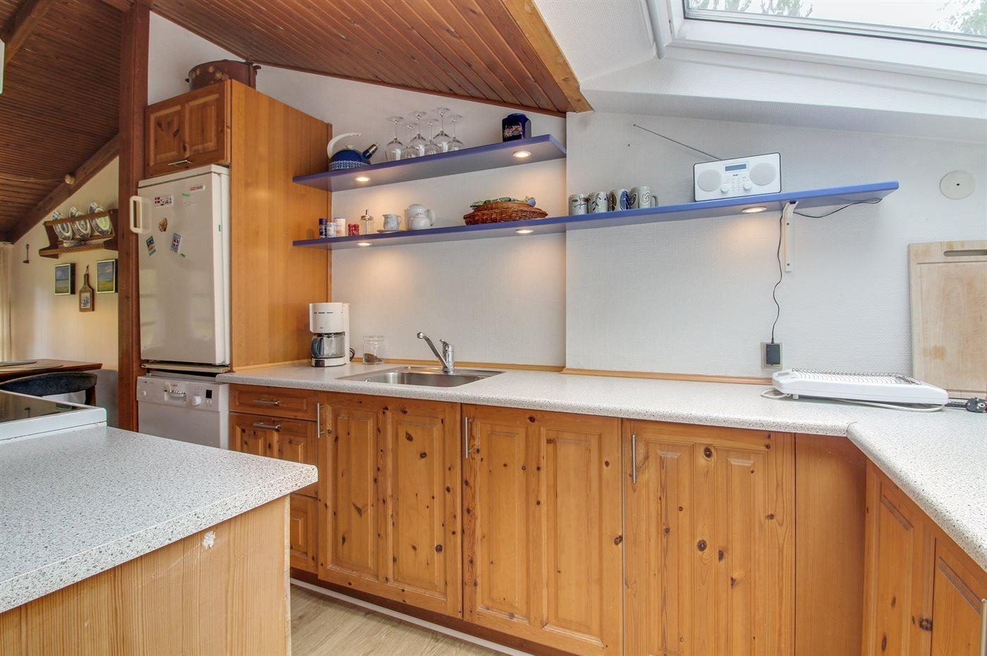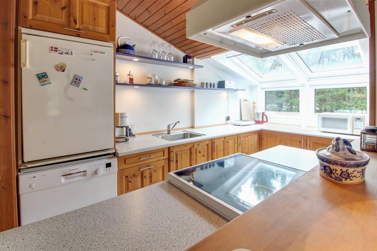 De keuken is uitgerust met koelkast Er is 3 elektrische kookplaten, bakoven, magnetron en vaatwasser.