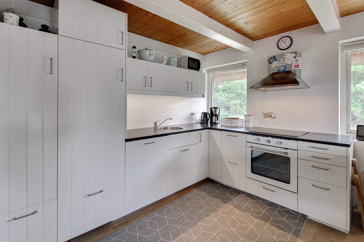 De keuken is uitgerust met koelkast Er is 4 elektrische kookplaten, bakoven, magnetron en vaatwasser.