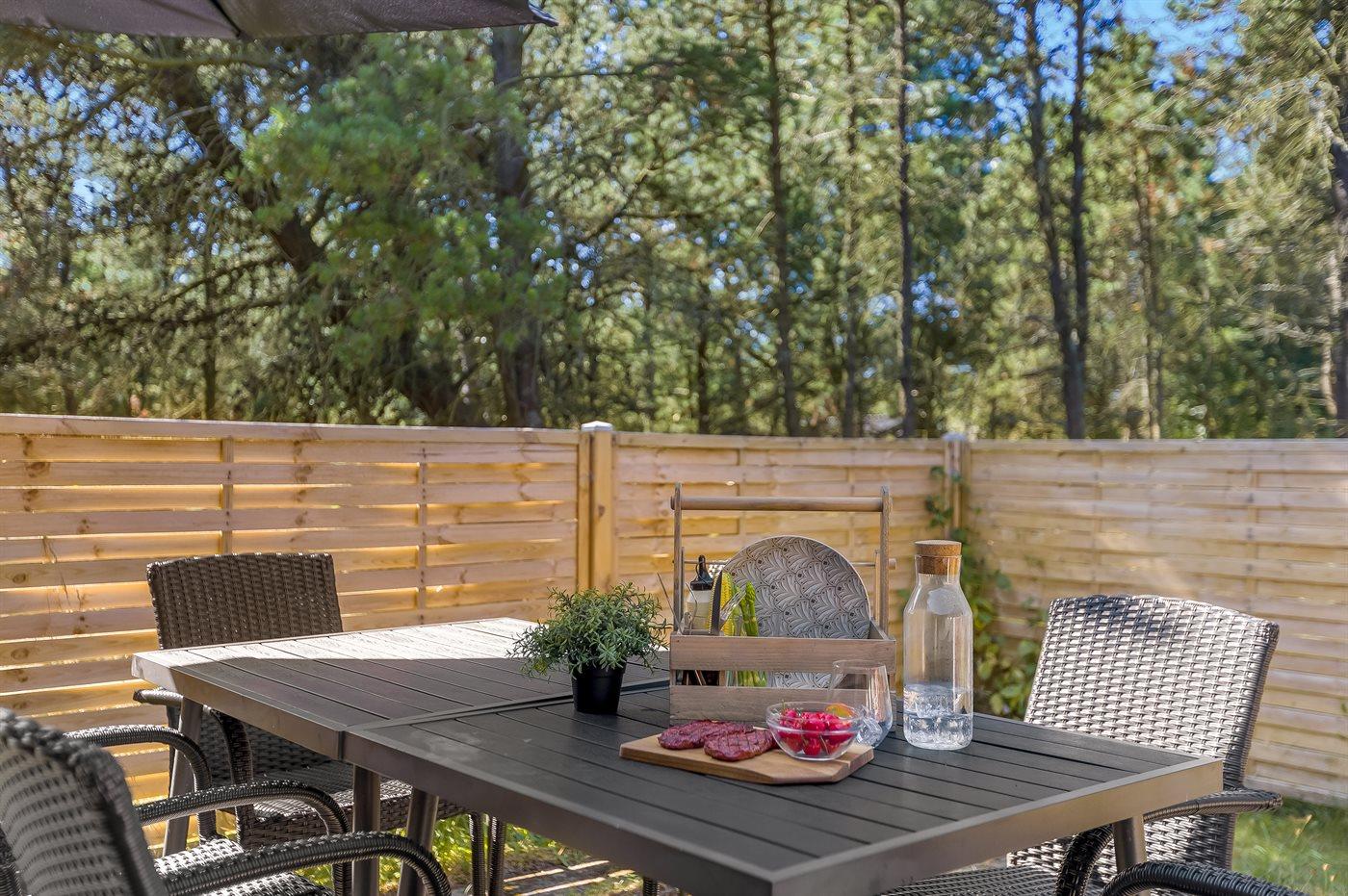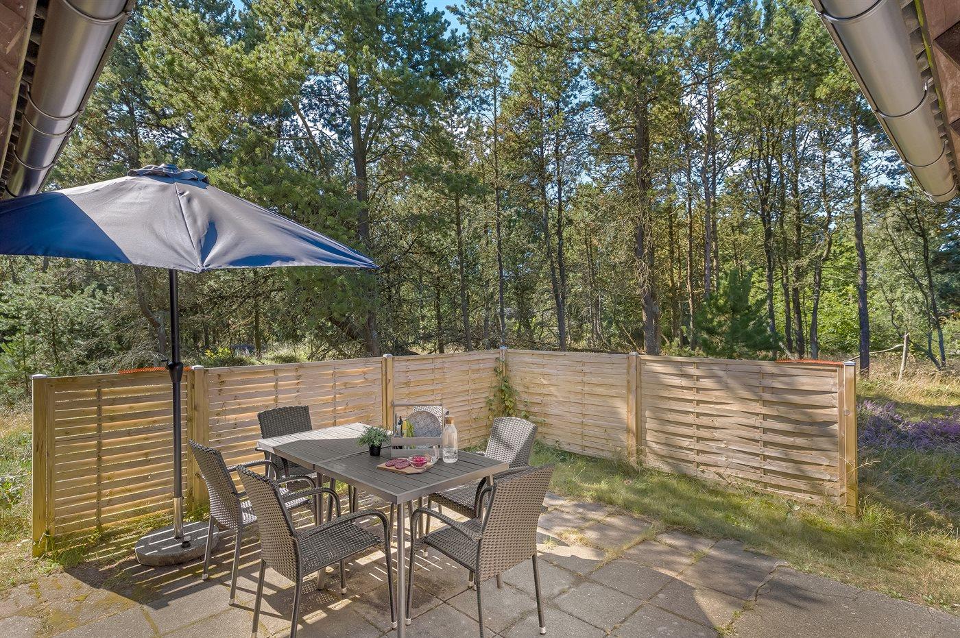 De vakantiewoning is gelegen op een 2500 m² groot natuural grond. Afstand tot de zee 800 m. Dichtstbijzijnde winkel 1800 m. Er is een golfbaan op een afstand van 300 m. Bij de vakantiewoning hoort 20 m² terras. Speelhuisje. Barbecue. Parkeerplaats bij het huis.