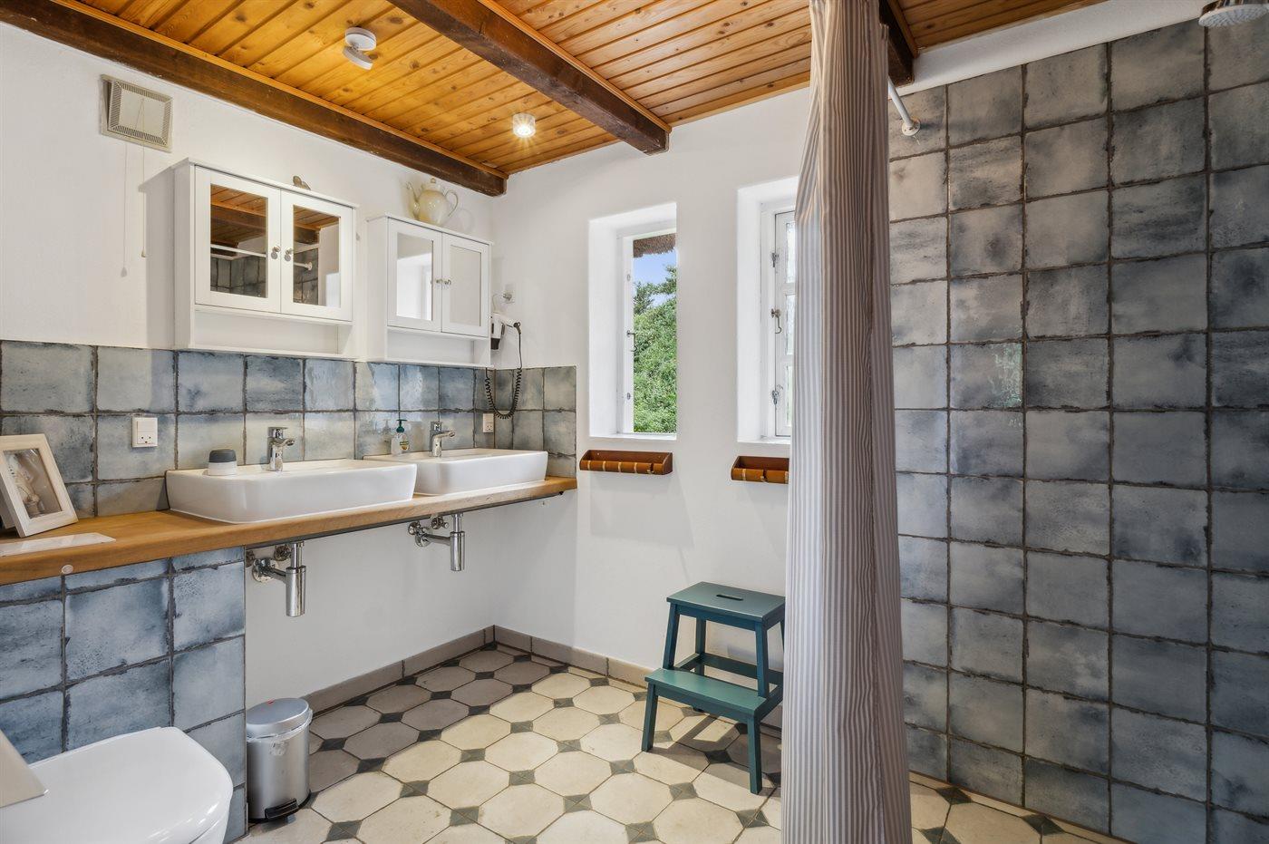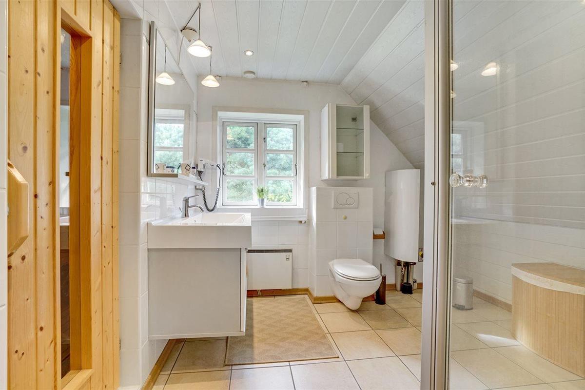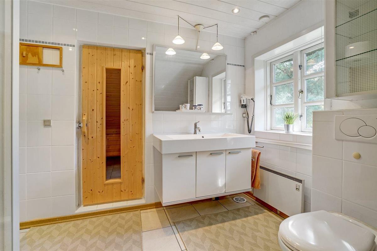 Er is 2 badkamers met douchehok en 2 toiletten. Er is vloerverwarming in 1 badkamer. De sauna biedt de gelegenheid tot ontspanning.