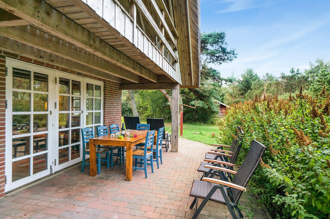 De vakantiewoning is gelegen op een 2500 m² groot natuural grond. Afstand tot de zee 1100 m. Dichtstbijzijnde winkel 1500 m. Er is een golfbaan op een afstand van 400 m. Bij de vakantiewoning hoort 25 m² terras. Daarnaast is er een 7 m² groot overdekt terras. Parkeerplaats bij het huis.