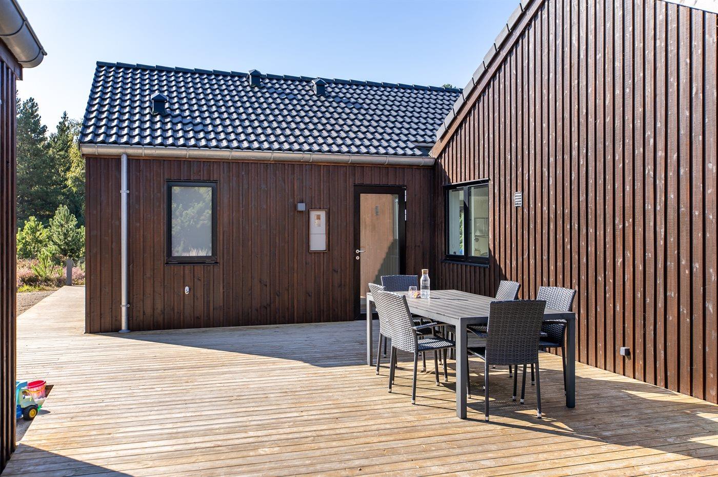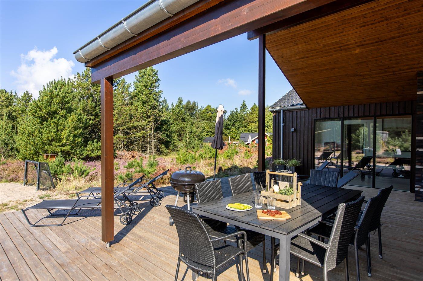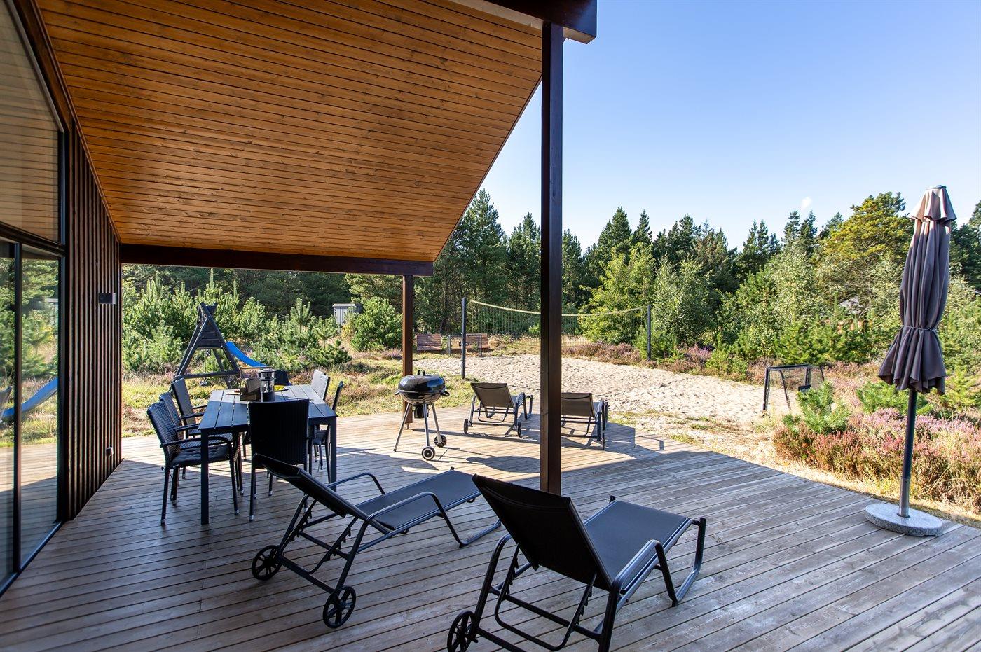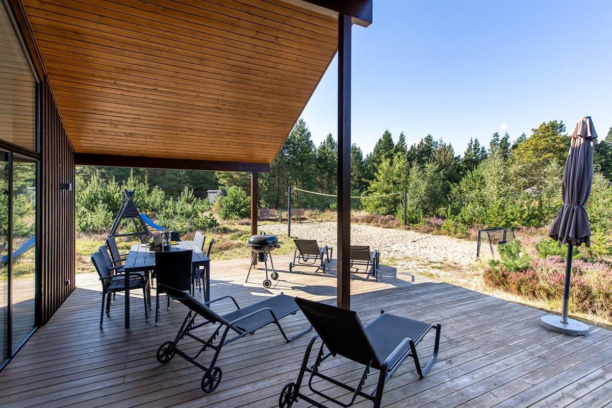 Modern vakantiehuis in Rømø met sauna, bubbelbad en ruime terrassen, ideaal voor ontspanning en familieplezier.