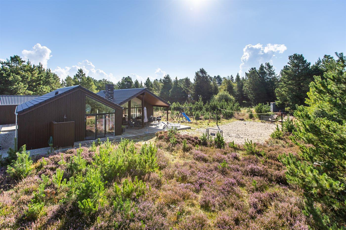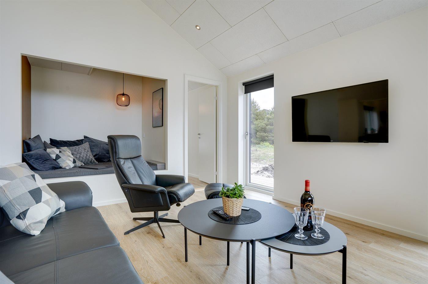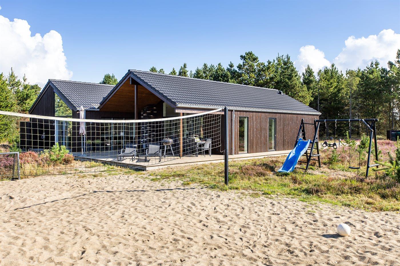 Modern vakantiehuis in Rømø met sauna, bubbelbad en ruime terrassen, ideaal voor ontspanning en familieplezier.
