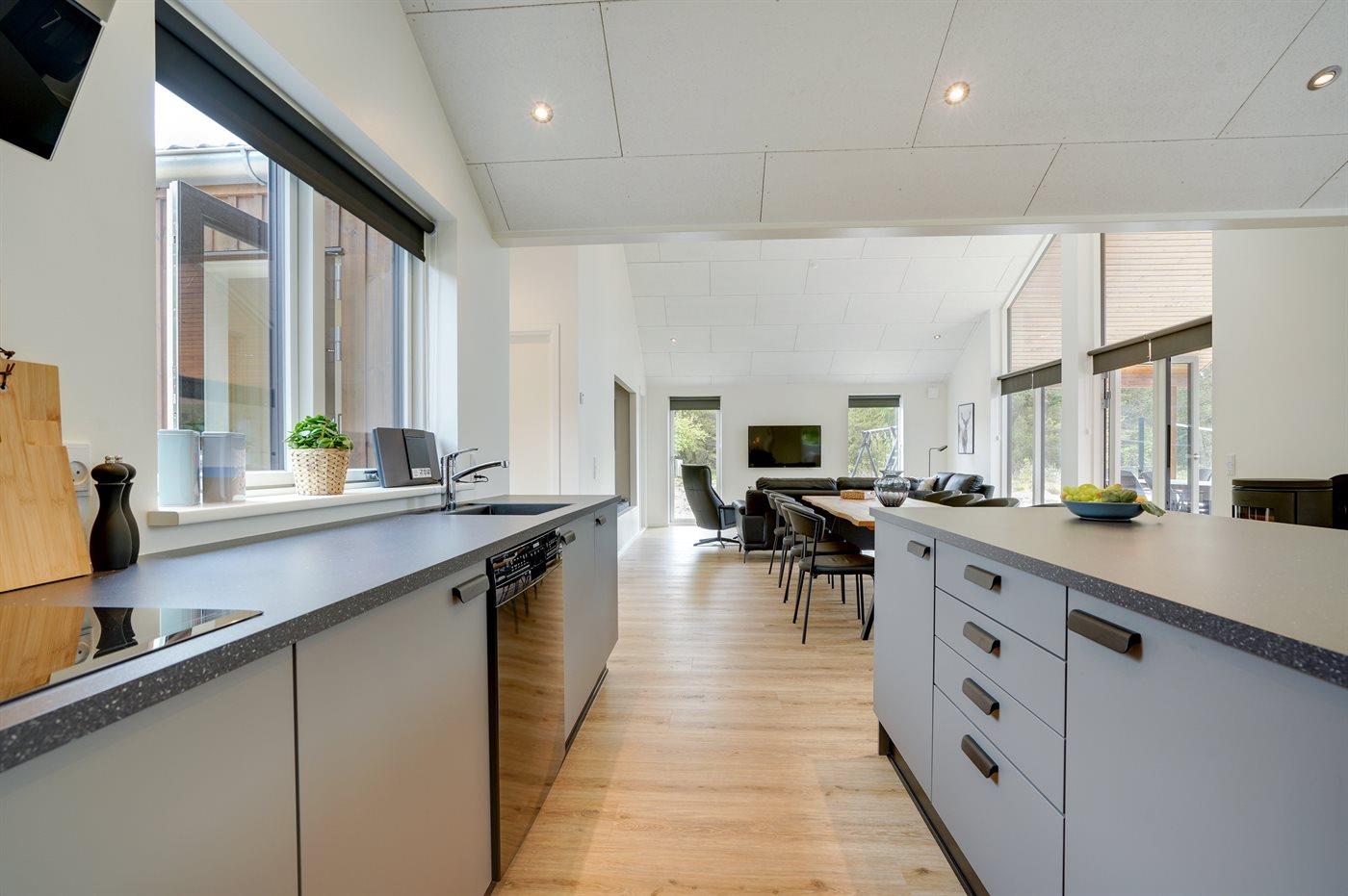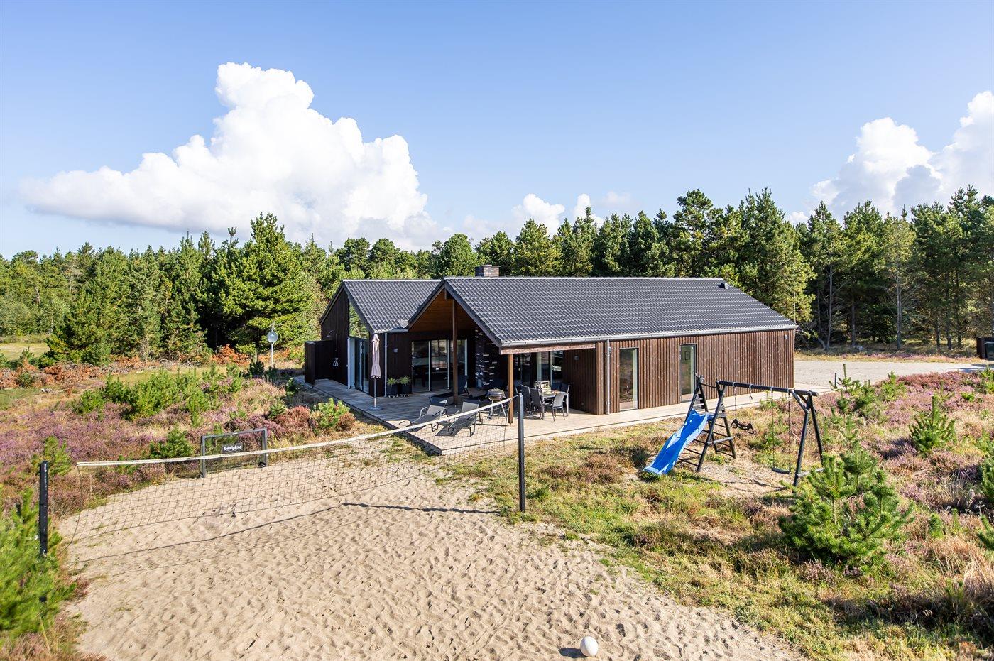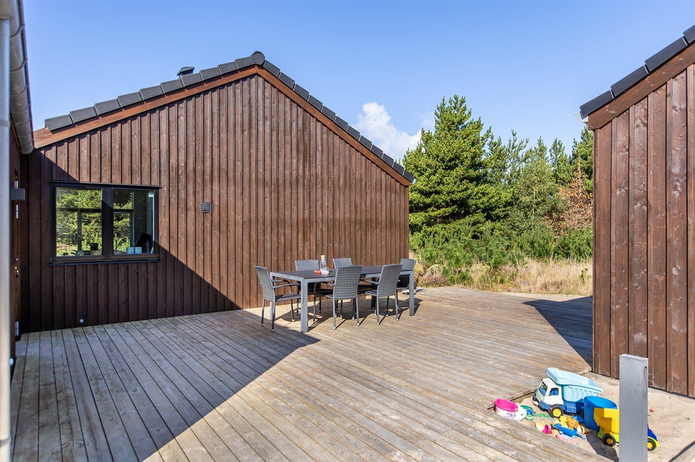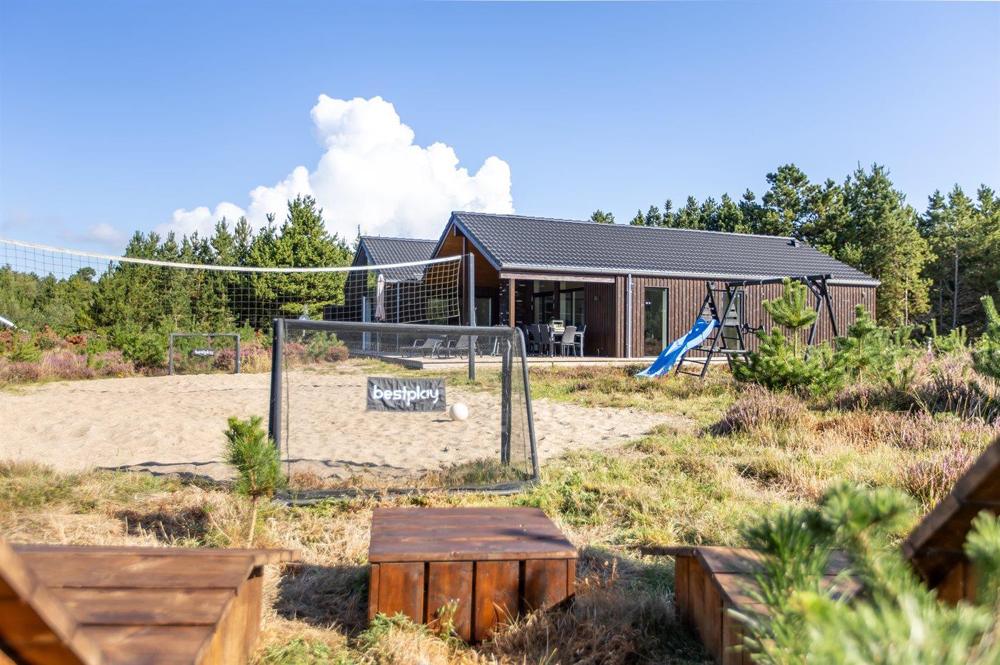 Modern vakantiehuis in Rømø met sauna, bubbelbad en ruime terrassen, ideaal voor ontspanning en familieplezier.