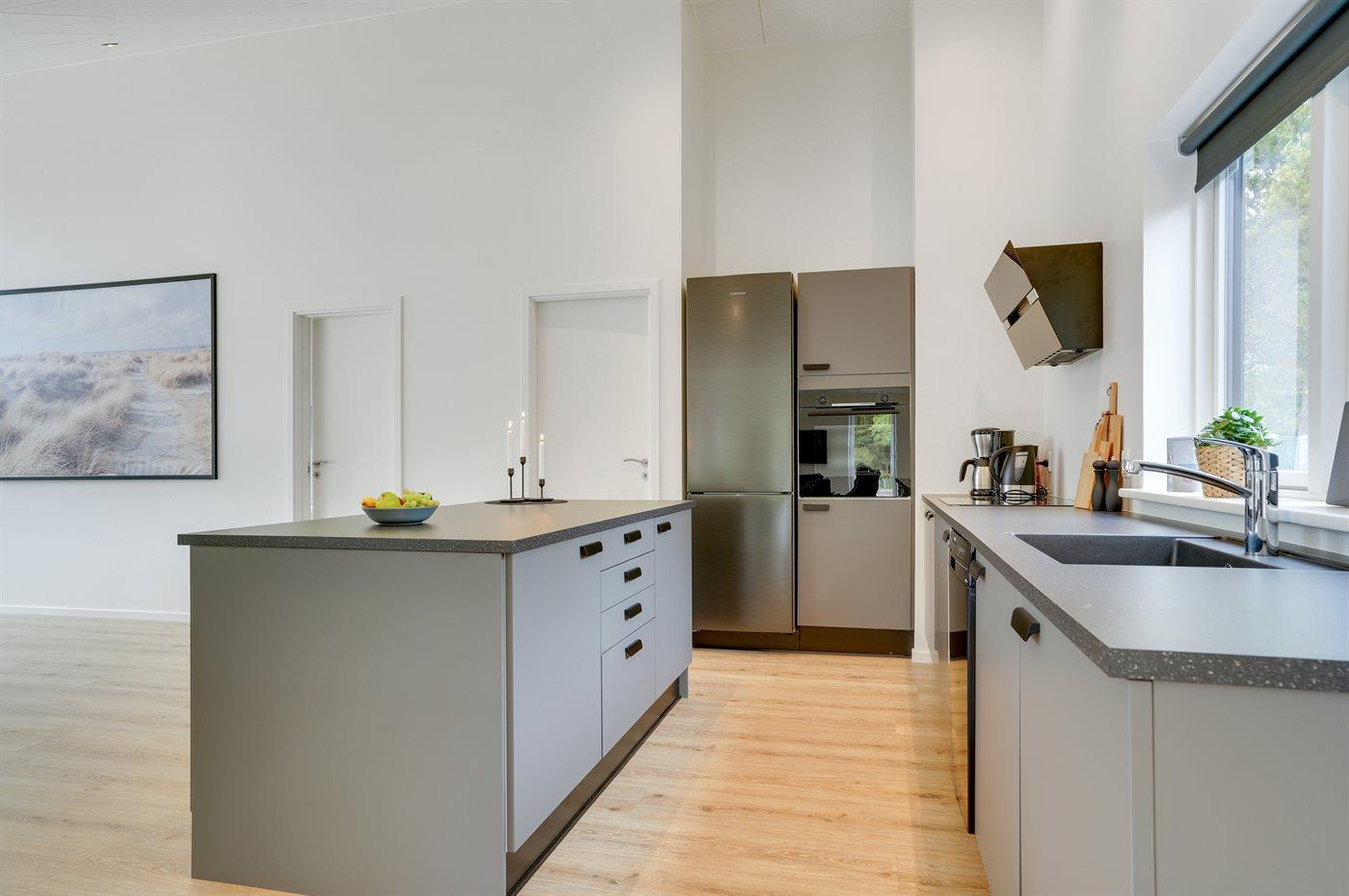 De keuken is uitgerust met koelkast Er zijn 4 keramische kookplaten, heteluchtoven, magnetron en vaatwasser.