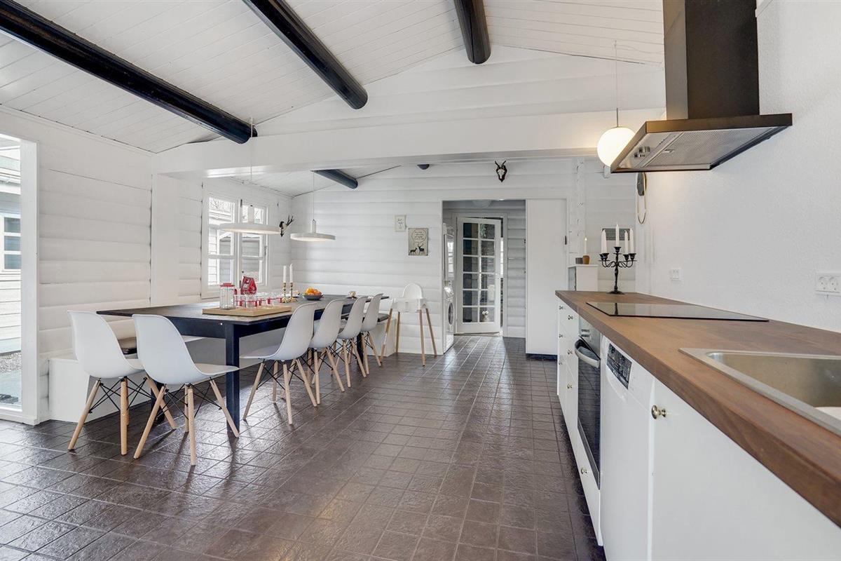De keuken is uitgerust met koelkast Er is 4 elektrische kookplaten, bakoven, magnetron en vaatwasser.