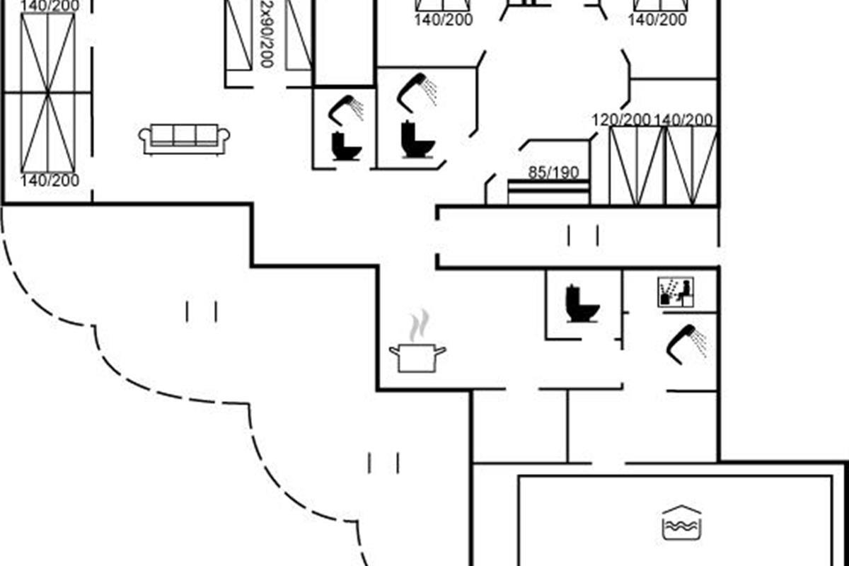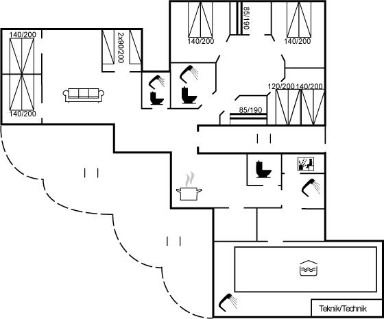 Er is 2 badkamers met douche en 3 toiletten, waarvan 1 gastentoilet. Er is vloerverwarming in 2 van de badkamers. De sauna biedt de gelegenheid tot ontspanning.