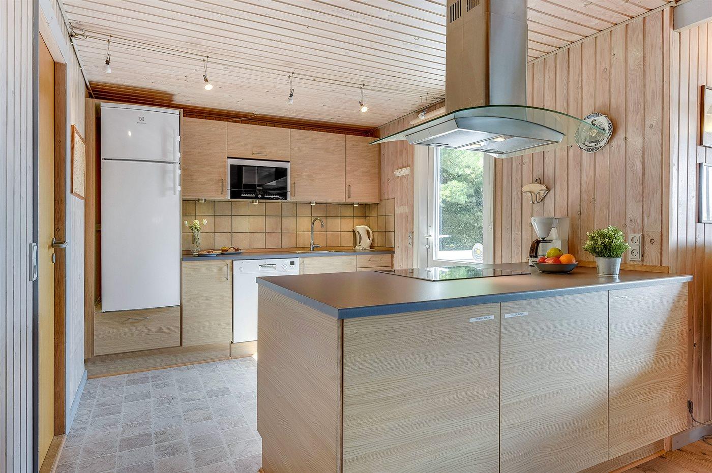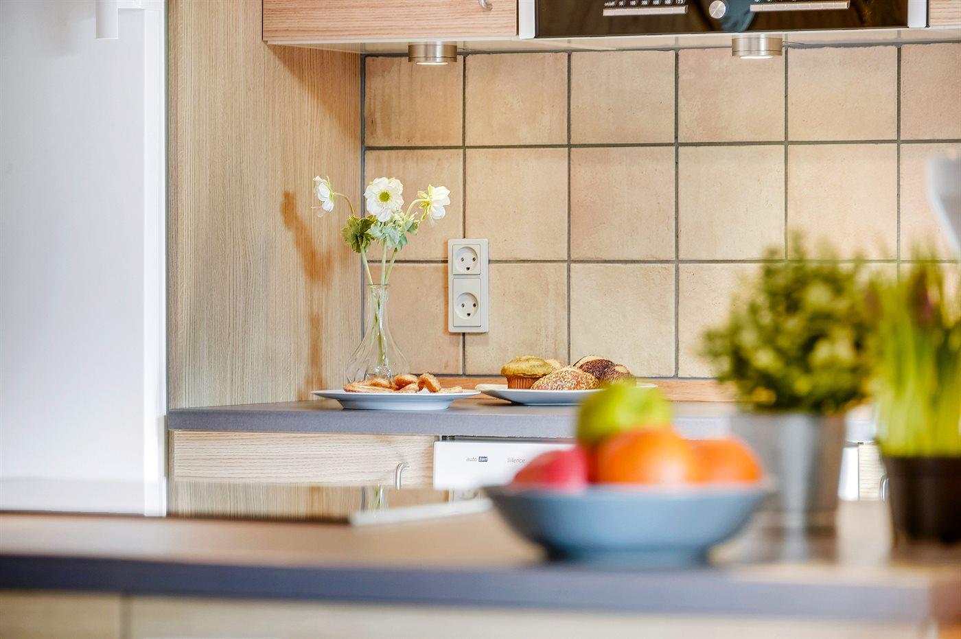 De keuken is uitgerust met koelkast Er is 4 elektrische kookplaten, heteluchtoven en vaatwasser.