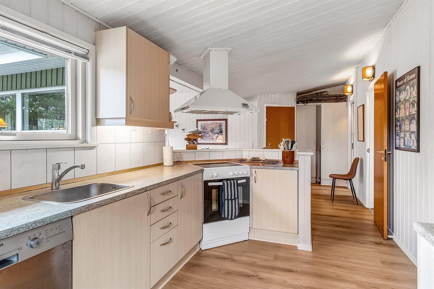 De keuken is uitgerust met koelkast Er is 4 elektrische kookplaten, bakoven, magnetron en vaatwasser.