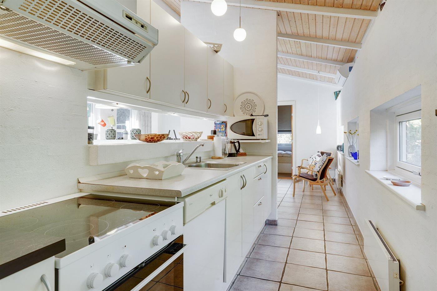 De keuken is uitgerust met koelkast Er is 4 elektrische kookplaten, bakoven, magnetron en vaatwasser.