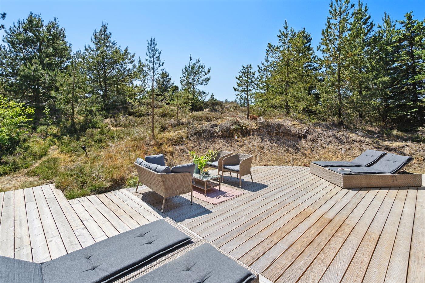 De vakantiewoning is gelegen op een 2500 m² groot natuural grond.Afstand tot de waddenzee 200 m. Dichtstbijzijnde winkel 1500 m. Bij de vakantiewoning hoort 40 m² terras. Daarnaast is er een 12 m² groot overdekt terras. Schommel. Zandbak. Parkeerplaats bij het huis.