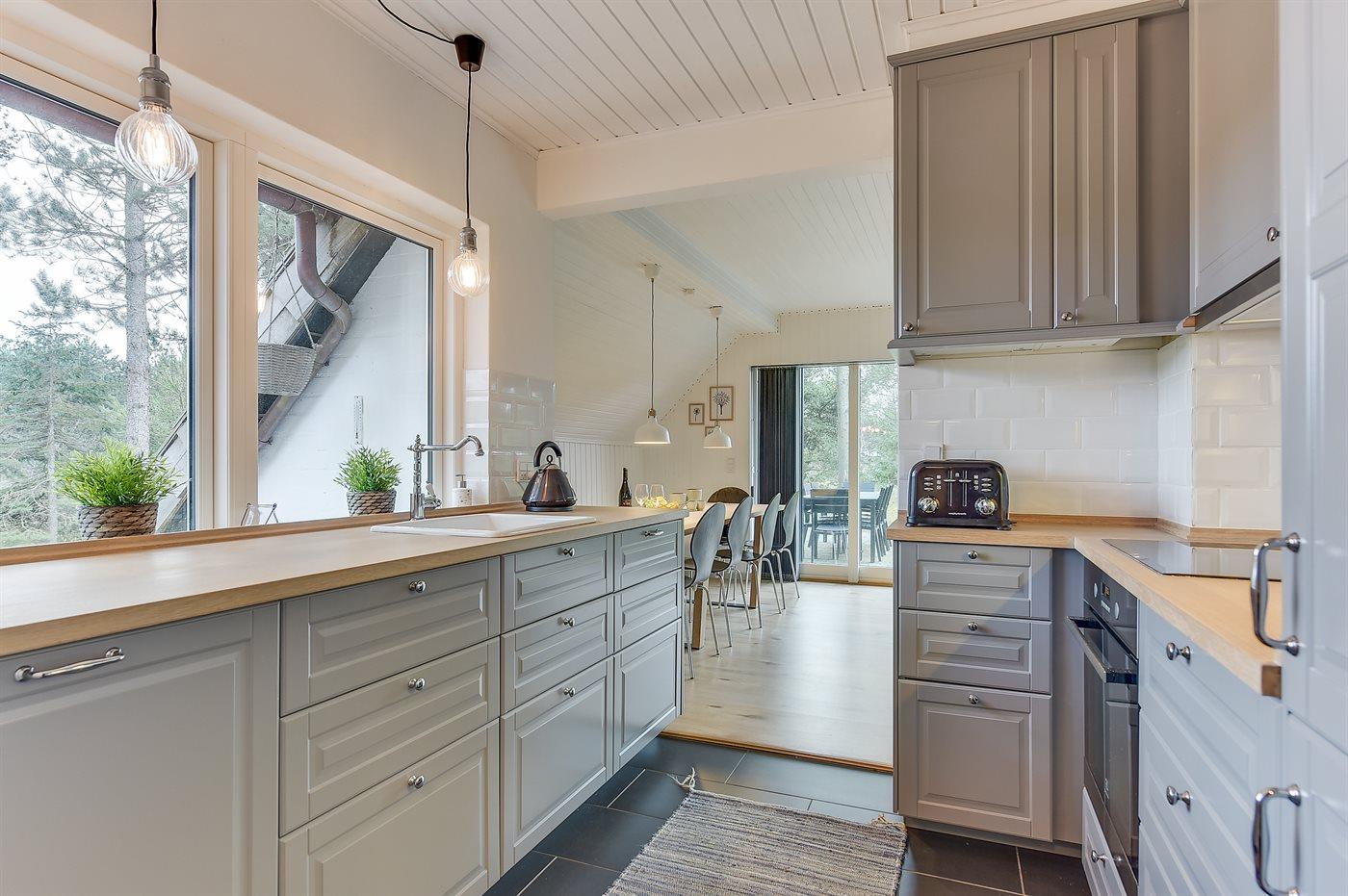 De keuken is uitgerust met koelkast Er zijn 4 keramische kookplaten, heteluchtoven en vaatwasser.