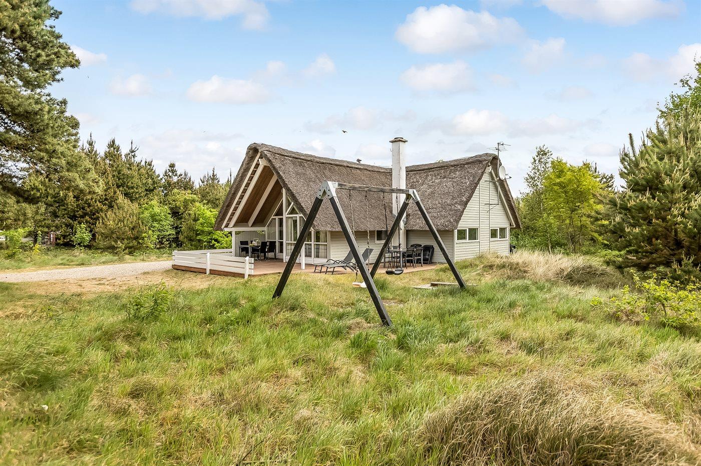 De vakantiewoning is gelegen op een 2600 m² groot natuural grond. Afstand tot de zee 1000 m. Dichtstbijzijnde winkel 2800 m. Er is een golfbaan op een afstand van 325 m. Bij de vakantiewoning hoort 30 m² terras. Daarnaast is er een 10 m² groot overdekt terras. Gereedschapsruimte. Schommel. Zandbak. Parkeerplaats bij het huis.
