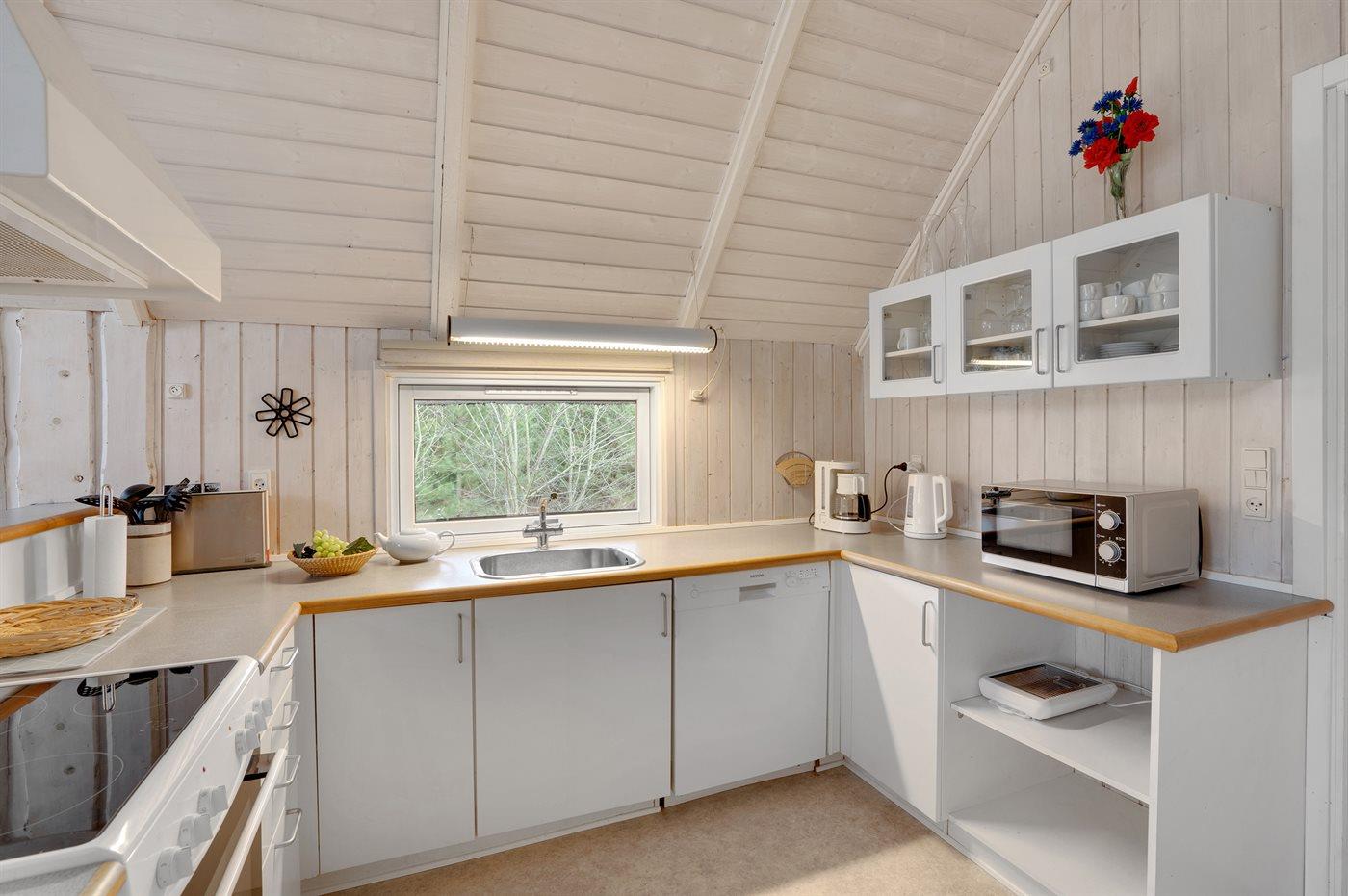 De keuken is uitgerust met koelkast Er is 4 elektrische kookplaten, heteluchtoven, magnetron en vaatwasser.