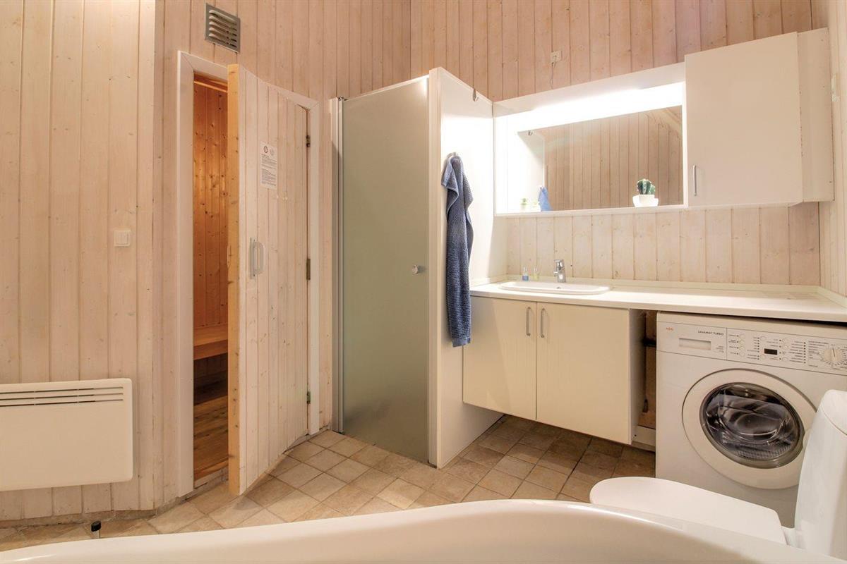 Er is 1 badkamer met douchehok en 2 toiletten, waarvan 1 gastentoilet. Er is vloerverwarming in 1 badkamer. De sauna biedt de gelegenheid tot ontspanning.