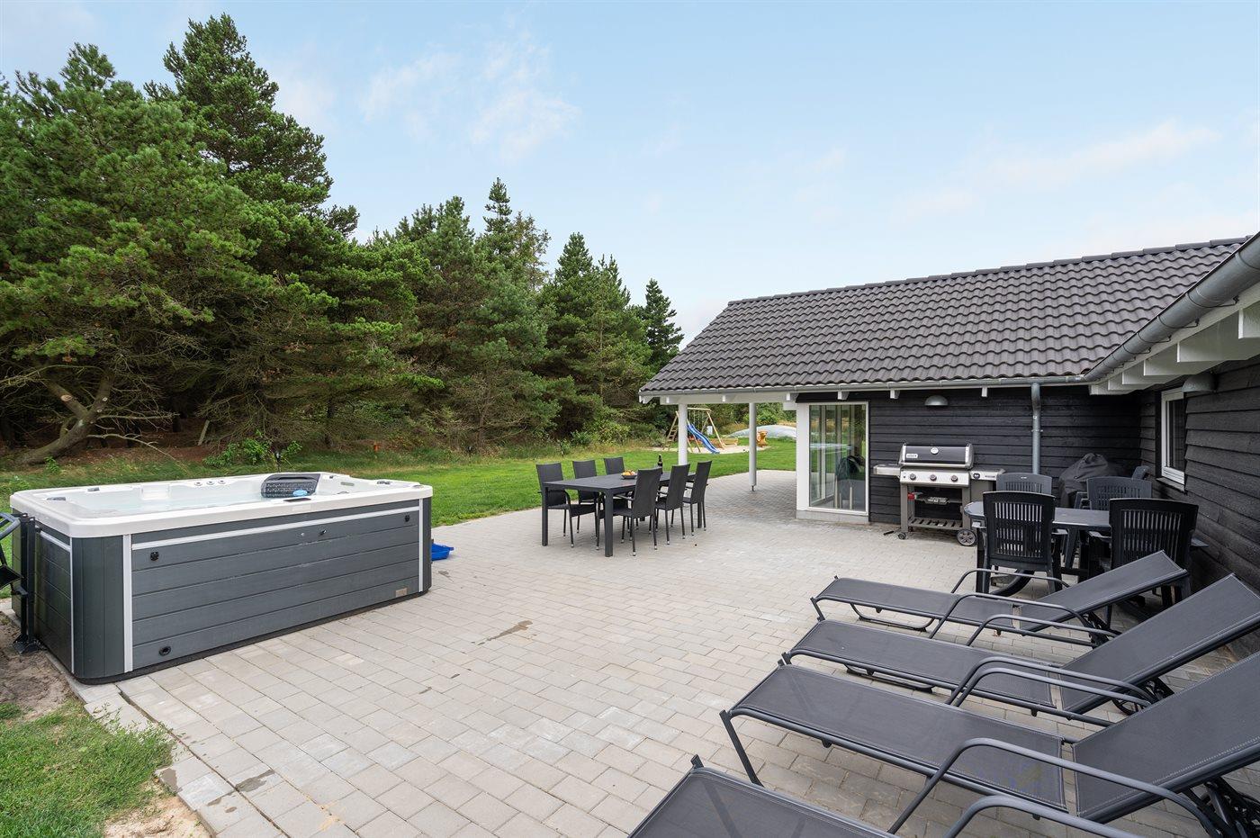 Het binnenbubbelbad (vulwater) biedt ontspanning aan 2 personen.Het buitenbubbelbad (standwater) biedt ontspanning aan 5 personen.