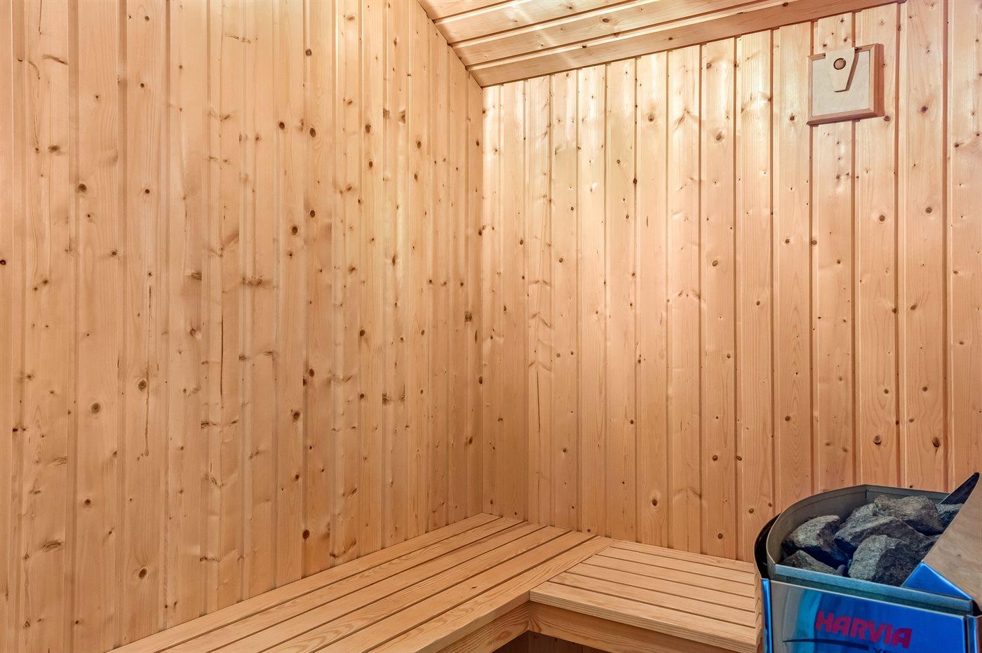 Er is 2 badkamers met douchehok en 2 toiletten. Er is vloerverwarming in 2 van de badkamers. De sauna biedt de gelegenheid tot ontspanning.