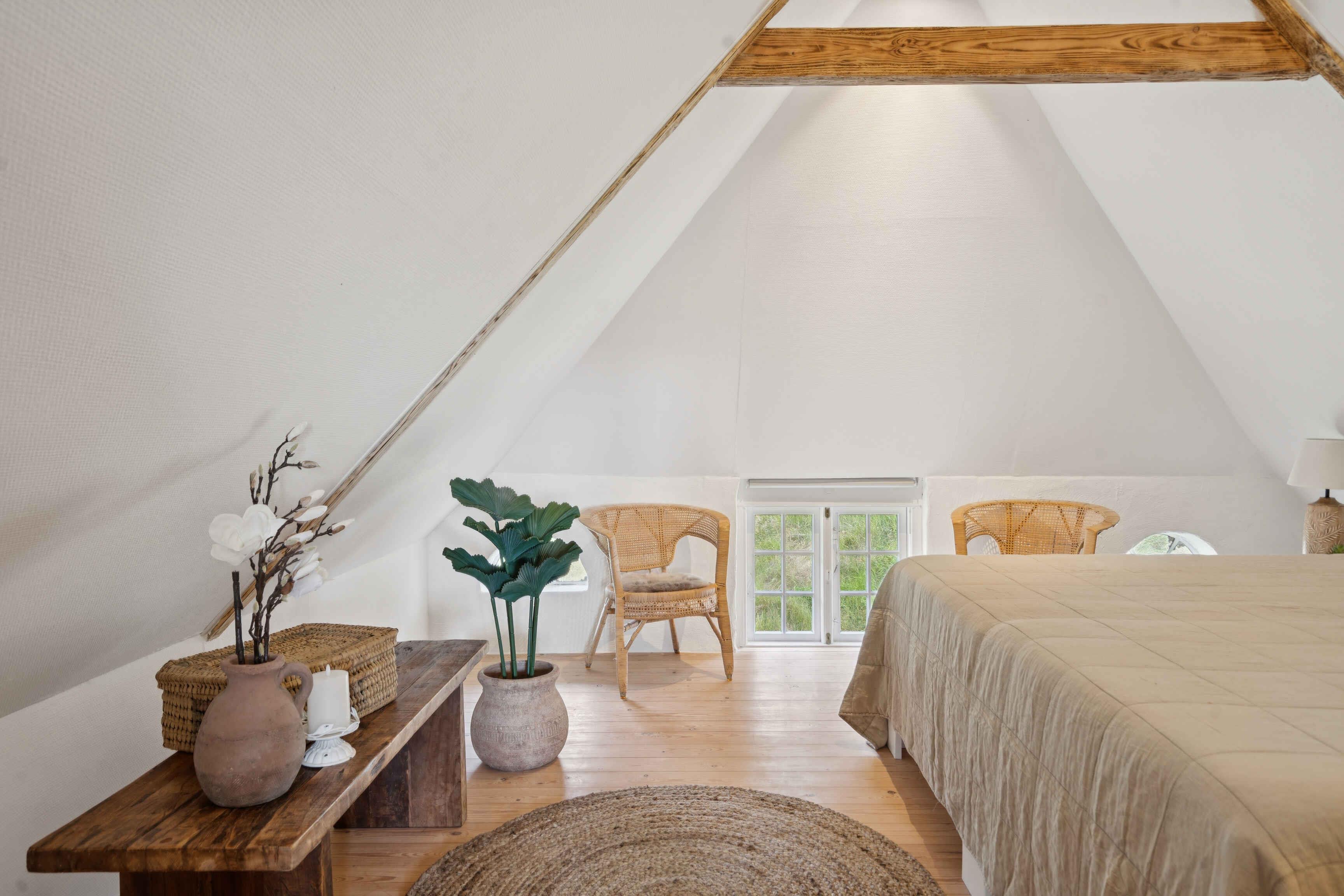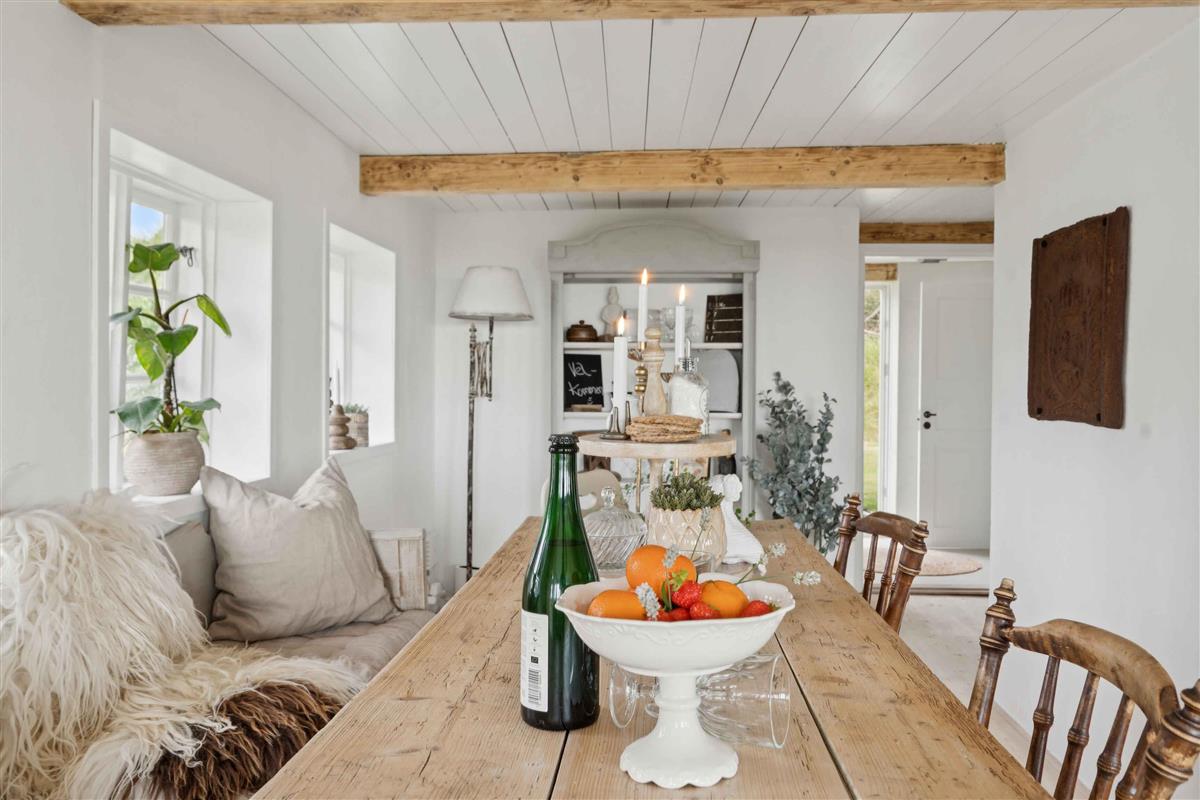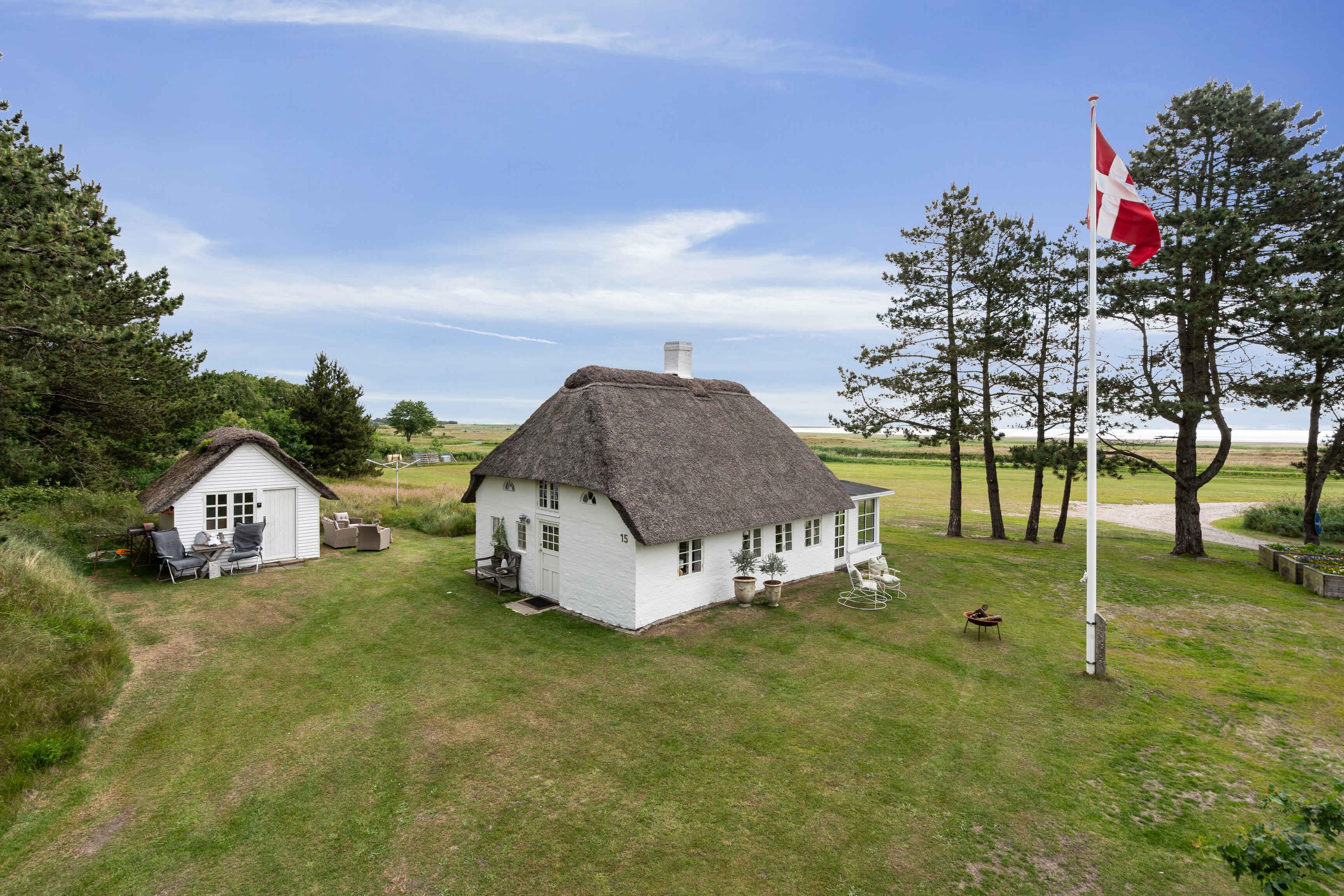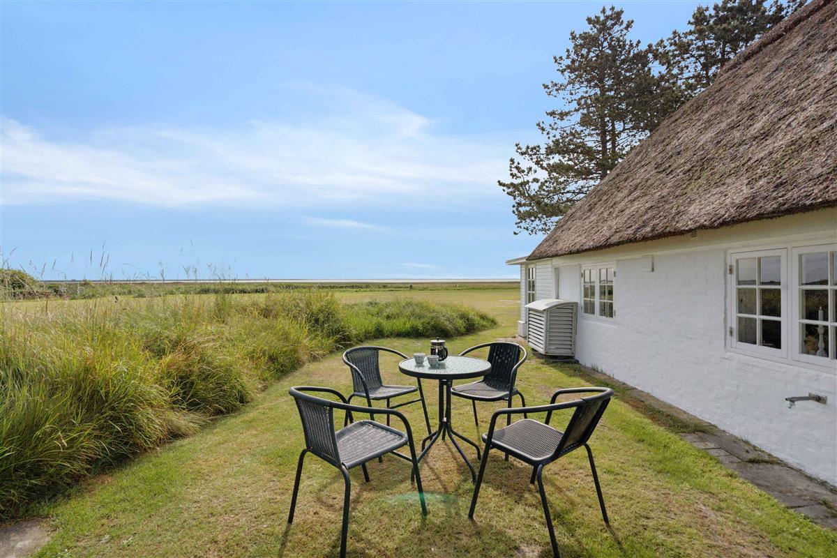 Huur een authentiek, oud Rømø-huis met rieten dak, gelegen op een prachtig natuurperceel. Het huis beschikt over een kleine entree met toegang tot een kleine badkamer met toilet en douche, evenals een kleine slaapkamer met stapelbed voor twee personen. Vanuit de entree is er toegang tot de keuken en woonkamer. Vanuit de woonkamer is er panoramisch uitzicht over het waddengebied en de Rømø-dam. Elke ochtend kan de zonsopgang over het wad worden bewonderd – als het weer het toelaat. De keuken is uitgerust met een vaatwasser, inductiekookplaat, koelkast met vriesvak, airfryer, heteluchtoven en afzuigkap. De woonkamer is ingericht met comfortabele, sigaarbruine leren banken, een salontafel en fijne houten fauteuils met lamsvacht. De eettafel is een prachtige, antieke lange tafel met bijpassende bank en stoelen voor in totaal 6 personen. Het huis wordt verwarmd met een warmtepomp op de begane grond en elektrische radiatoren in het stapelbedkamer, de badkamer en de slaapkamer op de eerste verdieping. Op de eerste verdieping bevindt zich een overloop met twee eenpersoonsbedden en een dakkapel met uitzicht op zee. Vanuit deze kamer is er toegang tot een slaapkamer met tweepersoonsbed. Buiten kun je genieten van fijne tuinmeubels op het grasveld. De aangrenzende weide biedt volop ruimte voor balspelen, vliegeren en andere buitenactiviteiten. Het huis is onlangs gerenoveerd, maar stamt uit 1702. Oorspronkelijk was het een woning voor een matroos – op Rømø kon je de status van een huis bewonen aan het aantal schoorstenen: één voor matrozen, twee voor stuurmannen en drie voor kapiteins. Dit huis hoort bij de naastgelegen kapiteinsboerderij Hattesgaard, waar nu een gezellige antiekcafé gevestigd is. Hier worden vijf dagen per week koffie, thee, warme chocolade en 35 tot 45 soorten luxe gebak geserveerd. Het huis, genaamd “Mines Minde”, is vernoemd naar een dienstmeisje dat 25 jaar in Hattesgaard werkte en in 1910 dit huis kocht, toen het nog onder Duits bestuur viel. Tot haar dood in 1940 werkte ze dagelijks op het eiland voor 50 pfennig. Het huis is tegenwoordig een echt pareltje aan de Waddenzee, gelegen op een natuurperceel omgeven door gras, bos en open land. Er is een prachtig, weids uitzicht over de zee en het licht stroomt binnen via de vele ramen. Van dinsdag tot en met zaterdag is Café Hattesgaard geopend van 11.00 tot 17.00 uur. In deze periode is er levendigheid op Hattesgaard, en men moet rekening houden met meer bezoekers en activiteit op de parkeerplaats en de aangrenzende weide. De café is gesloten op zondag en maandag. Huurders van het huis wonen letterlijk op de eerste rij voor de beste koffie en taarten van Zuid-Jutland. Ten westen van het huis ligt een ongerept en beschermd natuurgebied dat eigendom is van de eigenaren van Hattesgaard. In de zomermaanden grazen er Galloway-runderen vrij in het gebied. Ze verzorgen het landschap en zijn een belangrijk onderdeel van het natuurbeheer. De dieren zijn rustig en ongevaarlijk. Bezoekers zijn welkom om het gebied te verkennen, waar onder andere bunkers en loopgraven te vinden zijn. Er is een rijk dierenleven met onder andere reeën en roofvogels. Men moet echter niet in het gebied wandelen op dagen dat er gejaagd wordt – dit wordt aangegeven met borden. Lakolk Strand ligt op ongeveer 4 km afstand. Het is het grootste openbare strand van Noord-Europa, en je kunt er met de auto direct het strand op rijden. Naast de natuur direct rond het huis biedt Rømø gevarieerde landschappen, stranden, restaurants, cafés en goede winkelmogelijkheden. Het huis heeft een plafondhoogte van 1,87 meter, onder de houten balken is het lager en in de serre is het 2 meter. Let op: Niet te huur voor commercieel gebruik.