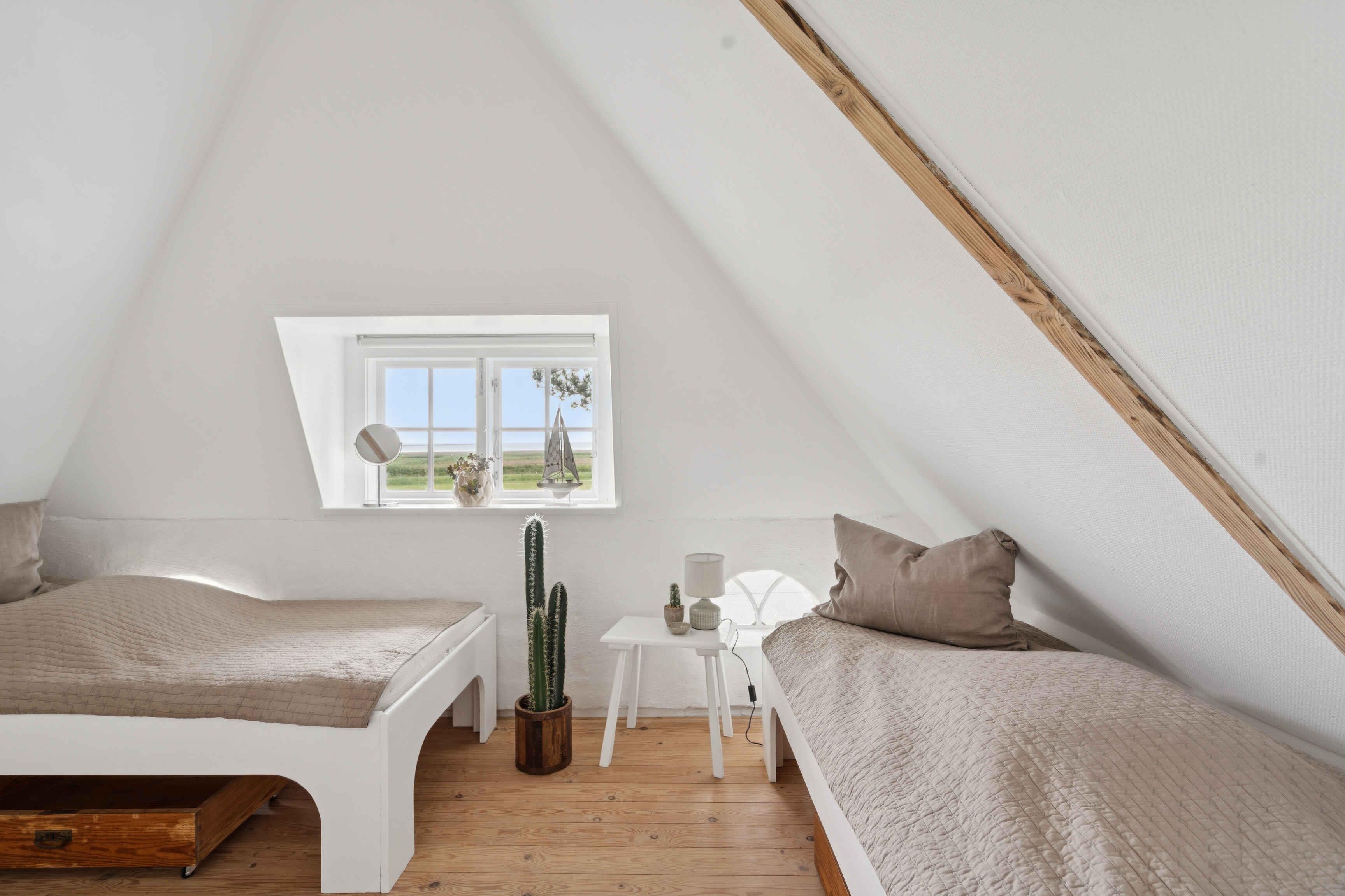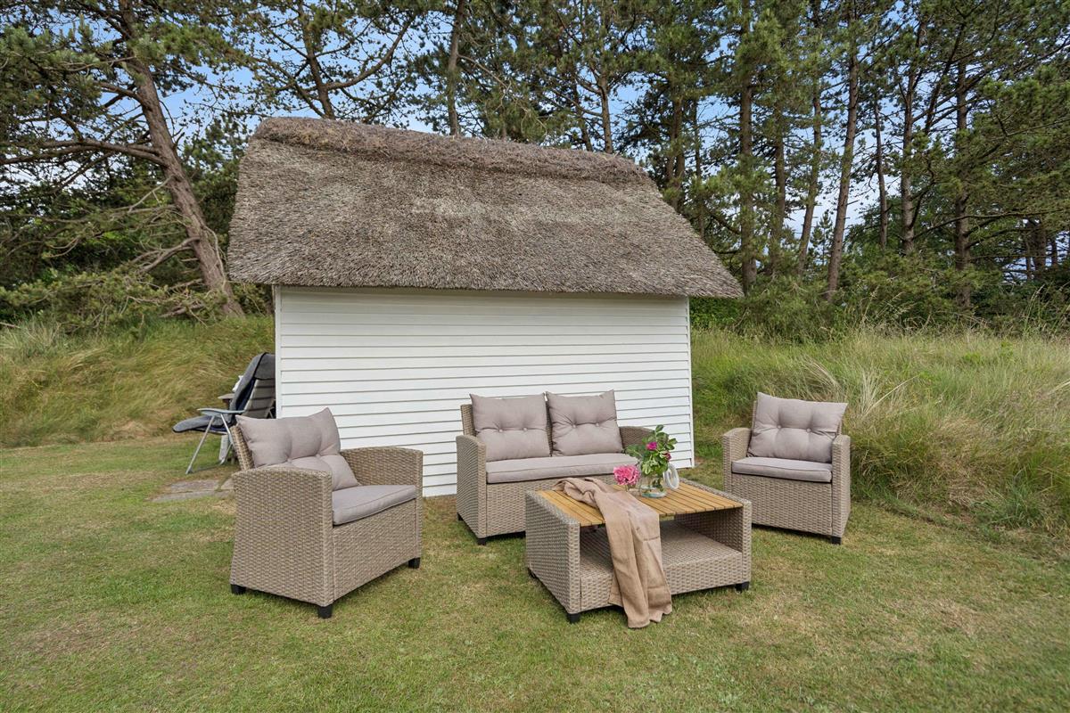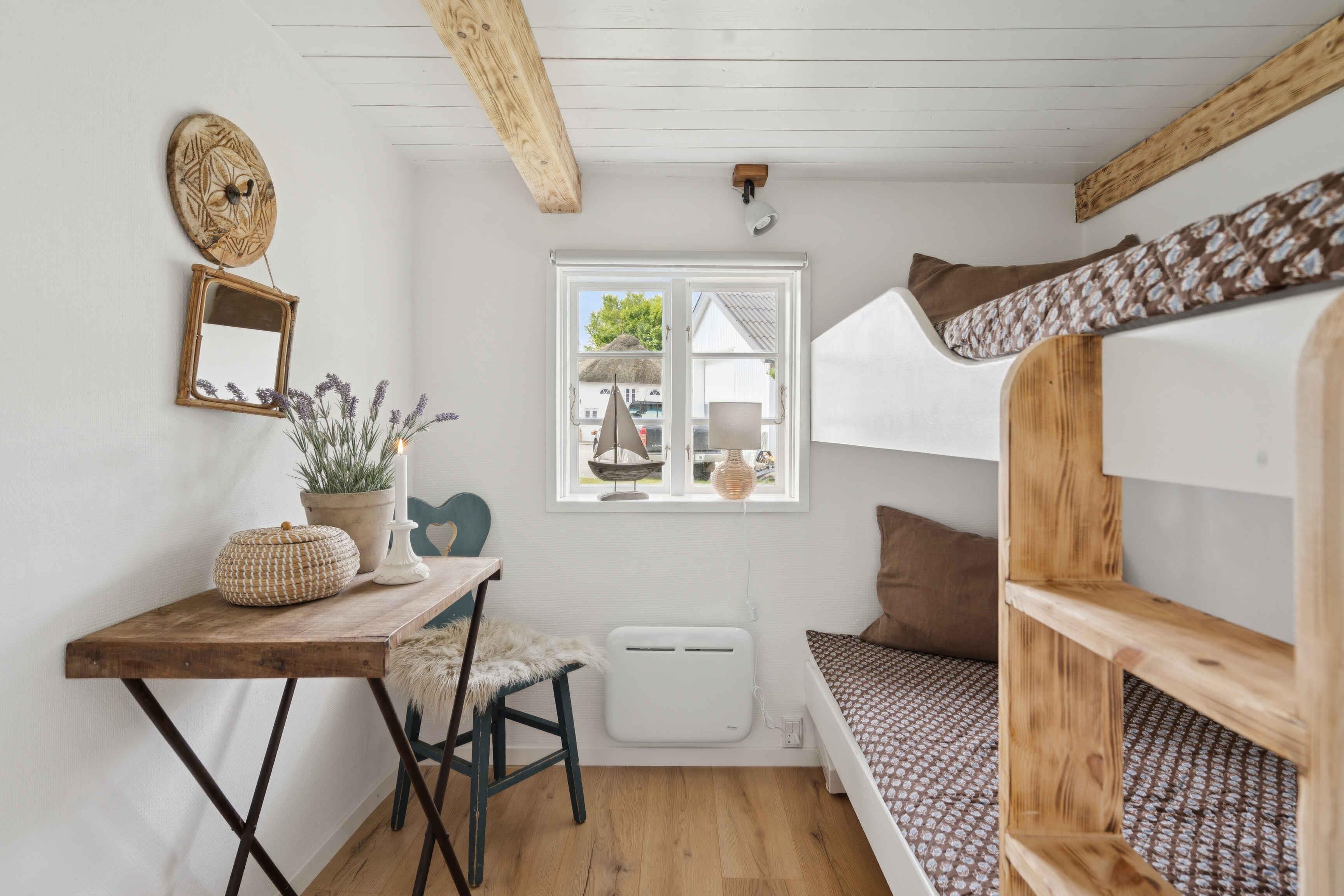 Huur een authentiek, oud Rømø-huis met rieten dak, gelegen op een prachtig natuurperceel. Het huis beschikt over een kleine entree met toegang tot een kleine badkamer met toilet en douche, evenals een kleine slaapkamer met stapelbed voor twee personen. Vanuit de entree is er toegang tot de keuken en woonkamer. Vanuit de woonkamer is er panoramisch uitzicht over het waddengebied en de Rømø-dam. Elke ochtend kan de zonsopgang over het wad worden bewonderd – als het weer het toelaat. De keuken is uitgerust met een vaatwasser, inductiekookplaat, koelkast met vriesvak, airfryer, heteluchtoven en afzuigkap. De woonkamer is ingericht met comfortabele, sigaarbruine leren banken, een salontafel en fijne houten fauteuils met lamsvacht. De eettafel is een prachtige, antieke lange tafel met bijpassende bank en stoelen voor in totaal 6 personen. Het huis wordt verwarmd met een warmtepomp op de begane grond en elektrische radiatoren in het stapelbedkamer, de badkamer en de slaapkamer op de eerste verdieping. Op de eerste verdieping bevindt zich een overloop met twee eenpersoonsbedden en een dakkapel met uitzicht op zee. Vanuit deze kamer is er toegang tot een slaapkamer met tweepersoonsbed. Buiten kun je genieten van fijne tuinmeubels op het grasveld. De aangrenzende weide biedt volop ruimte voor balspelen, vliegeren en andere buitenactiviteiten. Het huis is onlangs gerenoveerd, maar stamt uit 1702. Oorspronkelijk was het een woning voor een matroos – op Rømø kon je de status van een huis bewonen aan het aantal schoorstenen: één voor matrozen, twee voor stuurmannen en drie voor kapiteins. Dit huis hoort bij de naastgelegen kapiteinsboerderij Hattesgaard, waar nu een gezellige antiekcafé gevestigd is. Hier worden vijf dagen per week koffie, thee, warme chocolade en 35 tot 45 soorten luxe gebak geserveerd. Het huis, genaamd “Mines Minde”, is vernoemd naar een dienstmeisje dat 25 jaar in Hattesgaard werkte en in 1910 dit huis kocht, toen het nog onder Duits bestuur viel. Tot haar dood in 1940 werkte ze dagelijks op het eiland voor 50 pfennig. Het huis is tegenwoordig een echt pareltje aan de Waddenzee, gelegen op een natuurperceel omgeven door gras, bos en open land. Er is een prachtig, weids uitzicht over de zee en het licht stroomt binnen via de vele ramen. Van dinsdag tot en met zaterdag is Café Hattesgaard geopend van 11.00 tot 17.00 uur. In deze periode is er levendigheid op Hattesgaard, en men moet rekening houden met meer bezoekers en activiteit op de parkeerplaats en de aangrenzende weide. De café is gesloten op zondag en maandag. Huurders van het huis wonen letterlijk op de eerste rij voor de beste koffie en taarten van Zuid-Jutland. Ten westen van het huis ligt een ongerept en beschermd natuurgebied dat eigendom is van de eigenaren van Hattesgaard. In de zomermaanden grazen er Galloway-runderen vrij in het gebied. Ze verzorgen het landschap en zijn een belangrijk onderdeel van het natuurbeheer. De dieren zijn rustig en ongevaarlijk. Bezoekers zijn welkom om het gebied te verkennen, waar onder andere bunkers en loopgraven te vinden zijn. Er is een rijk dierenleven met onder andere reeën en roofvogels. Men moet echter niet in het gebied wandelen op dagen dat er gejaagd wordt – dit wordt aangegeven met borden. Lakolk Strand ligt op ongeveer 4 km afstand. Het is het grootste openbare strand van Noord-Europa, en je kunt er met de auto direct het strand op rijden. Naast de natuur direct rond het huis biedt Rømø gevarieerde landschappen, stranden, restaurants, cafés en goede winkelmogelijkheden. Het huis heeft een plafondhoogte van 1,87 meter, onder de houten balken is het lager en in de serre is het 2 meter. Let op: Niet te huur voor commercieel gebruik.
