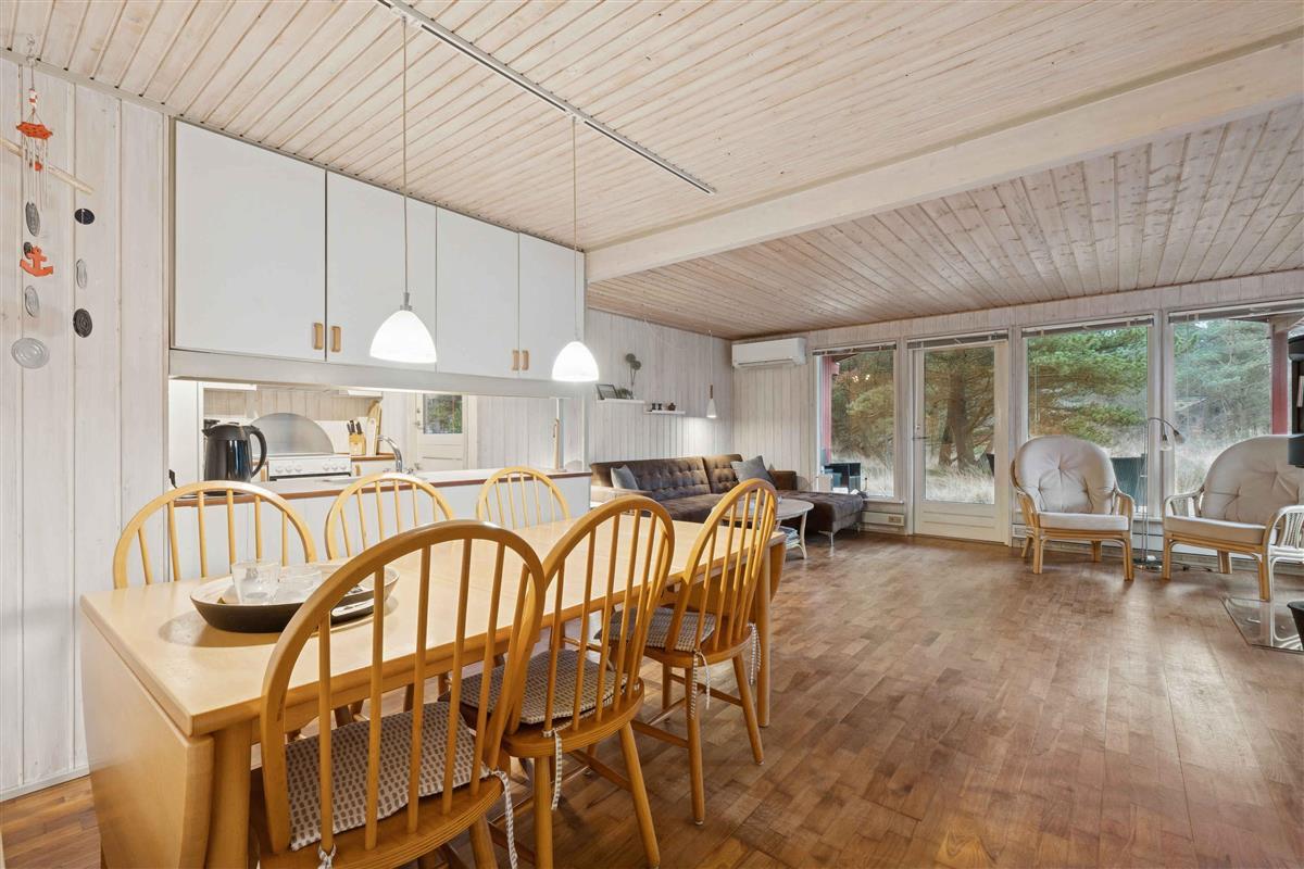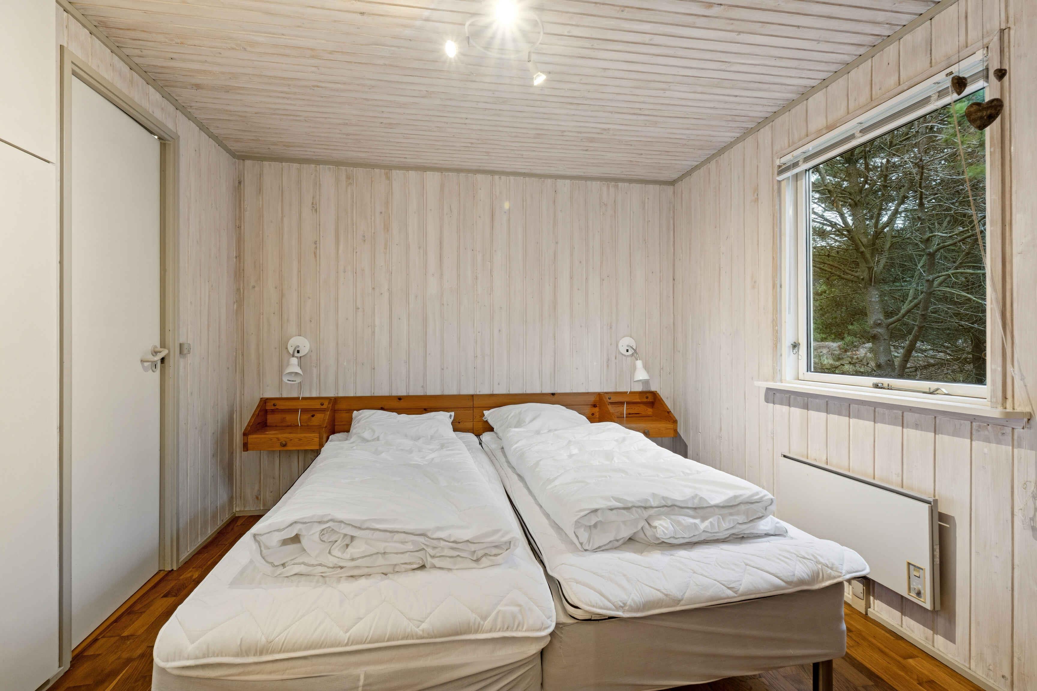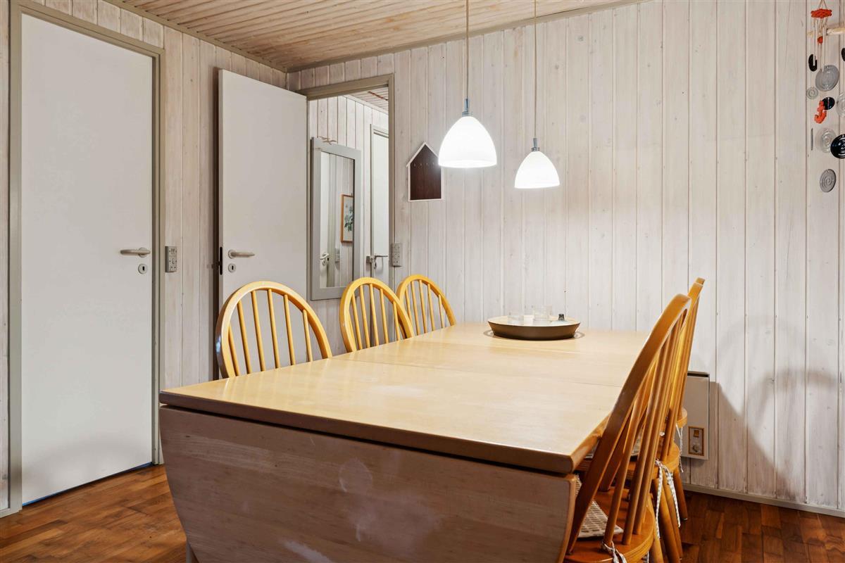 Het 64 m² grote vakantiehuis biedt plaats aan vijf personen en is ingericht voor een verblijf waar rust en natuur centraal staan. De open indeling zorgt voor een ontspannen sfeer en maakt het eenvoudig om samen te zijn, zowel binnen als buiten. Binnen liggen keuken, eethoek en woonkamer in één doorlopende ruimte. Er is een houtkachel die op koelere dagen voor een aangename sfeer zorgt. Het huis heeft drie slaapkamers: één met tweepersoonsbed, één met eenpersoonsbed en één met stapelbed. De woonkamer biedt directe toegang tot een deels overdekt en afgesloten terras, geschikt voor maaltijden en ontspanning. Het terras ligt uit naar het ruime natuurperceel, waar u ongestoord kunt genieten van het landschap. Buiten is er voldoende ruimte om te grillen, een boek te lezen of de kinderen veilig te laten spelen. Het grote perceel biedt kansen om dieren van dichtbij te zien en er zijn plekken met zon en beschutting, de hele dag door. De omgeving is ideaal voor natuurliefhebbers. De Waddenzee ligt op korte afstand en biedt mogelijkheden voor wadlopen, het ervaren van eb en vloed en het observeren van vogels. Nationaal Park Waddenzee staat op de UNESCO-werelderfgoedlijst en toont unieke landschappen die met de seizoenen veranderen. Rømø staat bekend om zijn brede zandstranden waar u kunt wandelen, fietsen of landzeilen in speciale gebieden. Het eiland heeft een netwerk van paden door heide en bos, perfect om te voet of met de fiets te verkennen. Vogelliefhebbers vinden goede observatieplekken langs de kust en in het binnenland. Winkels en lokale voorzieningen liggen op rijafstand, zodat dagelijkse boodschappen eenvoudig kunnen worden gedaan. De woning is geschikt voor zowel gezinnen als stellen die een rustpunt zoeken met gemakkelijke toegang tot natuur, uitstapjes en stille dagen in eigen tempo. Let op: Niet te huur voor commercieel gebruik.