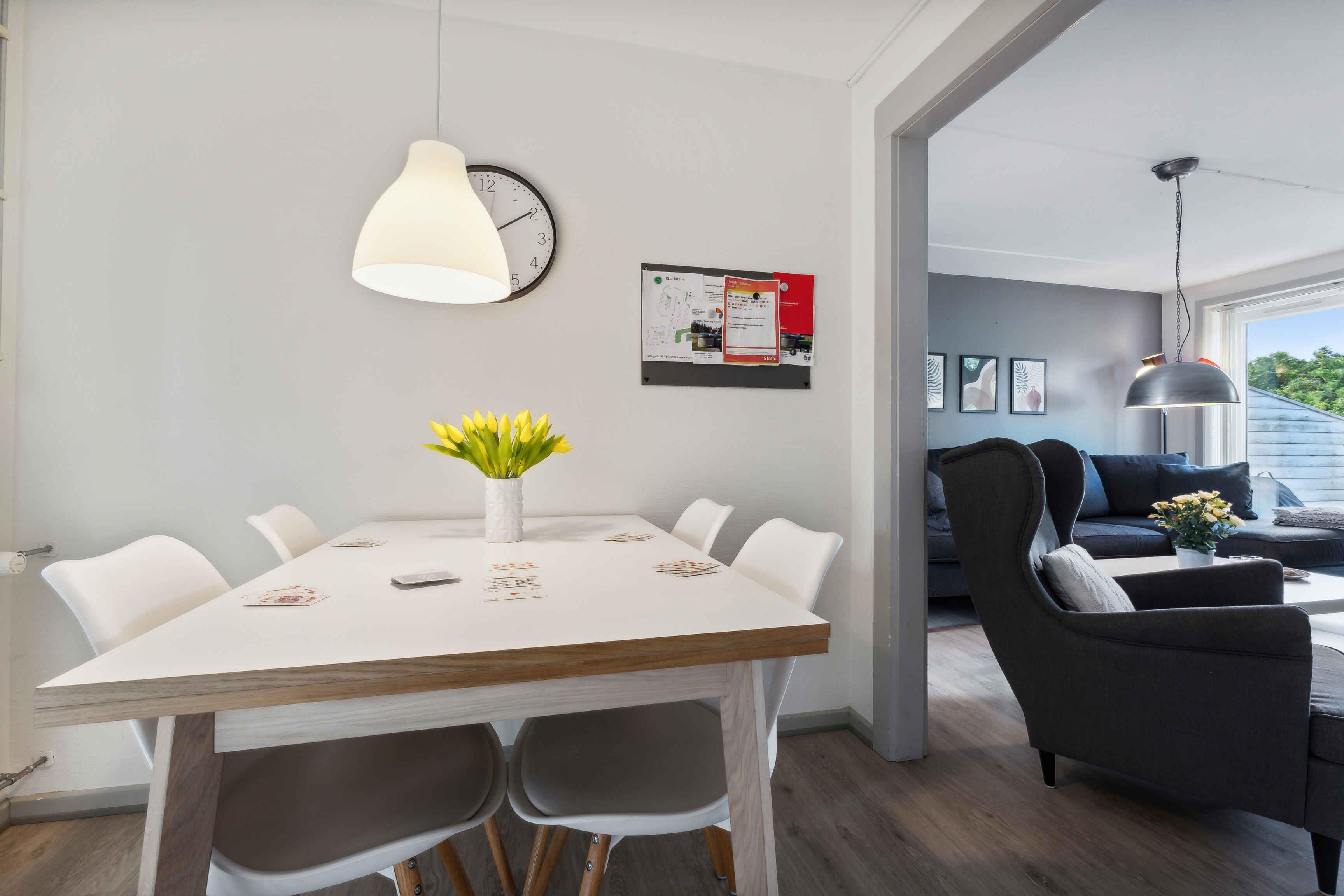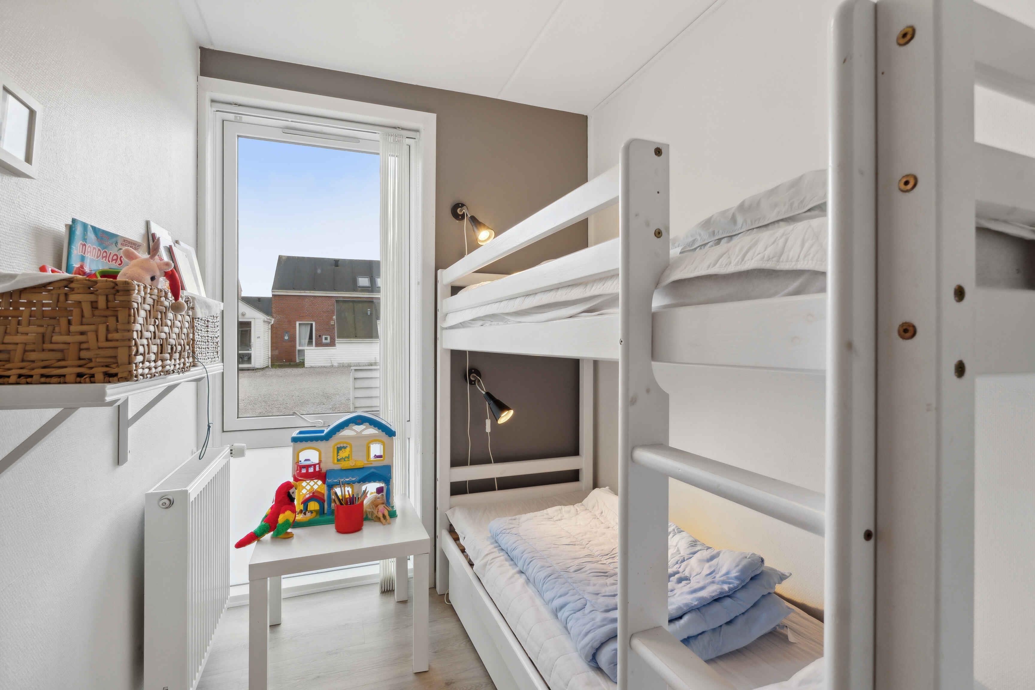 Welkom in dit mooie vakantiehuis gelegen op het prachtige Rømø! Dit gezellig ingerichte rijtjeshuis biedt 73 m2 puur comfort en ontspanning, perfect voor een onvergetelijke vakantie met familie of vrienden. Met ruimte voor maximaal 4 volwassenen en 2 kinderen is er voldoende ruimte voor iedereen. (de stapelbedden zijn 180 cm lang) Het vakantiehuis is slim ingedeeld met een lichte en ruime woonkamer, ingericht met comfortabele meubels en moderne voorzieningen. De open keuken is goed uitgerust, wat het gemakkelijk maakt om heerlijke maaltijden te bereiden die kunnen worden genoten aan de eettafel of op het terras, waar je kunt genieten van de frisse lucht en de mooie natuur. Het huis heeft meerdere slaapkamers, elk ingericht met comfortabele bedden en voldoende opbergruimte, wat zorgt voor een goede nachtrust na een dag vol activiteiten. De badkamer is modern en functioneel, met alle nodige faciliteiten. 1000 MB internet. De locatie van het vakantiehuis op Rømø maakt het gemakkelijk om de vele attracties van het eiland te verkennen, waaronder de uitgestrekte stranden, gezellige cafés en charmante winkels. Of je nu een actieve vakantie wilt met fietsen en wandelen of gewoon wilt ontspannen en genieten van de rustige omgeving, dit vakantiehuis is de perfecte uitvalsbasis. Er is een activiteitenruimte met spelletjes en een trainingsruimte voor zowel grote als kleine kinderen. Ook is er toegang tot een zwembad en een sauna - controleer de openingstijden ter plaatse. Kom en beleef een geweldige vakantie in dit uitnodigende en goed uitgeruste vakantiehuis op Rømø! Let op: Niet te huur voor commercieel gebruik.