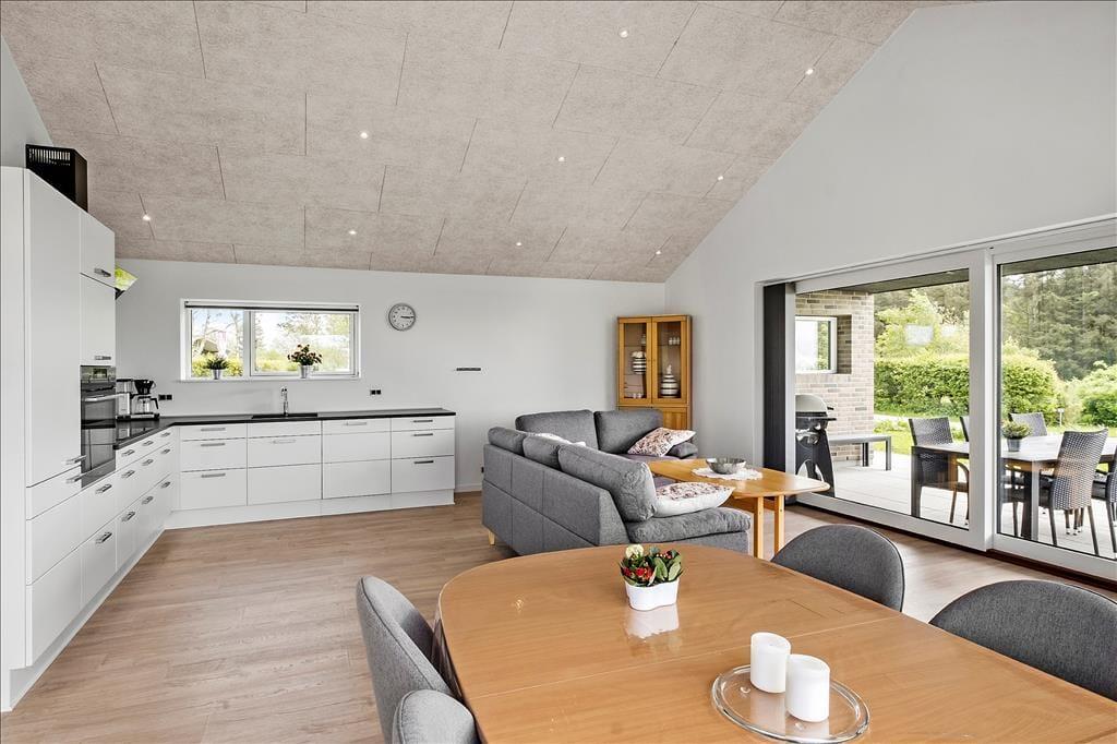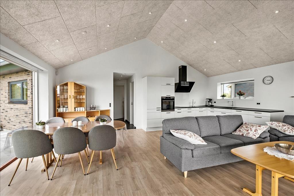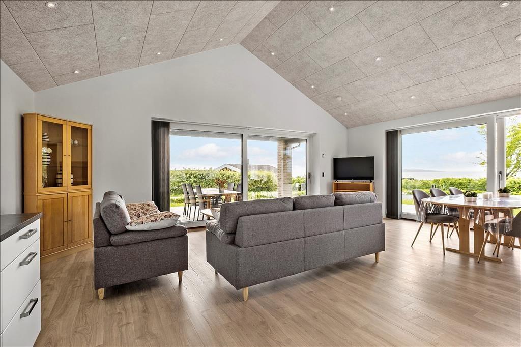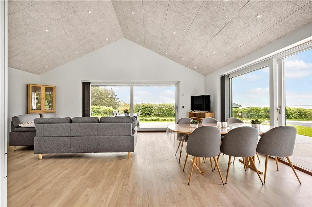 Bei einem Haus in derart toller Lage ist es von großer Bedeutung, dass die Aussicht bestmöglich zur Geltung kommt. Beim Bau im Jahr 2021 wurden der Wohnraum daher mit großen Panoramafenstern versehen, die es dir ermöglichen, die hübsche Umgebung bestmöglich zu genießen. Was könnte es Schöneres geben, als mit der Familie in geselliger Runde am Esstisch beisammenzusitzen oder es sich in der komfortablen Polstersitzgruppe gemütlich zu machen und dabei den reizvollen Tageslichteinfall und den Blick auf den Fjord in vollen Zügen zu genießen? Die gut ausgestattete Küche ist offen mit dem Wohnraum verbunden. Der Rest der Wohnfläche ist vier komfortablen Schlafräumen und zwei tollen Badezimmern überlassen. Das Haus eignet sich somit wunderbar für den gemeinsamen Urlaub zweier befreundeter Familien oder für einen Familienurlaub mit mehreren Generationen. Du darfst dich auf eine luftige, einladende Wohnatmosphäre freuen. Selbst die nicht offensichtlichen Details, wie die Fußbodenheizung, die sich durch das gesamte Haus zieht, tragen maßgeblich dazu bei, dass du einen schönen, behaglichen Urlaub genießt.