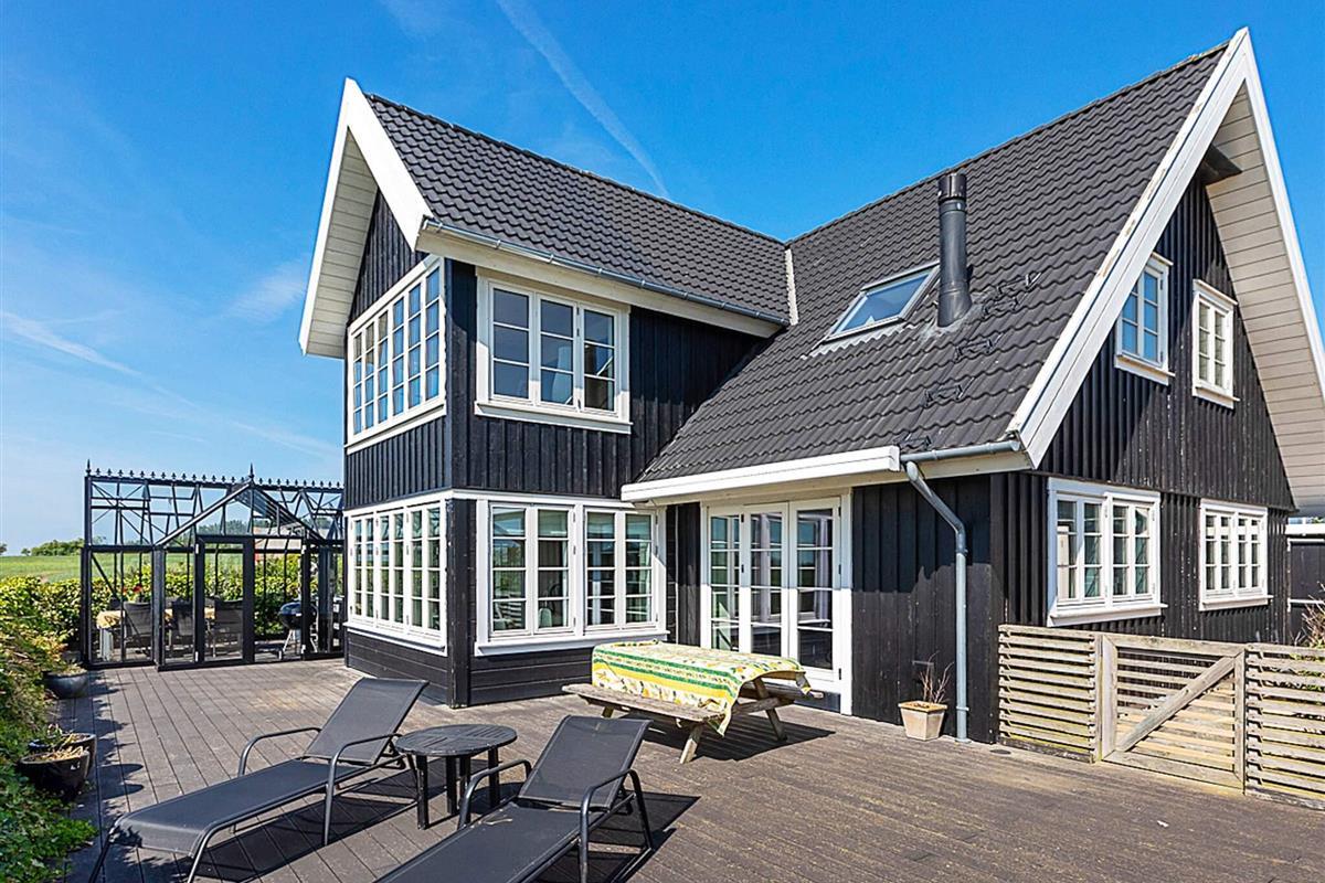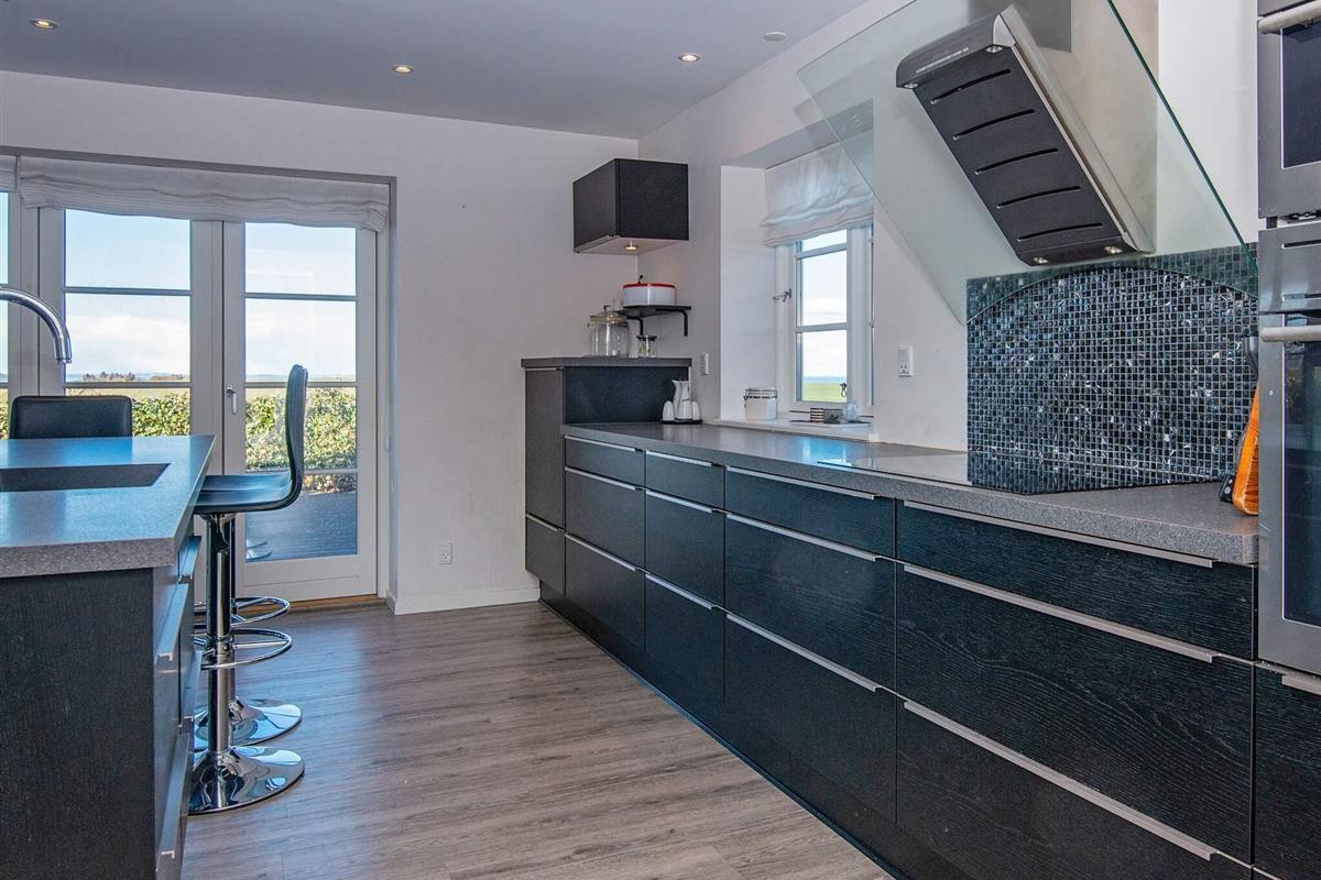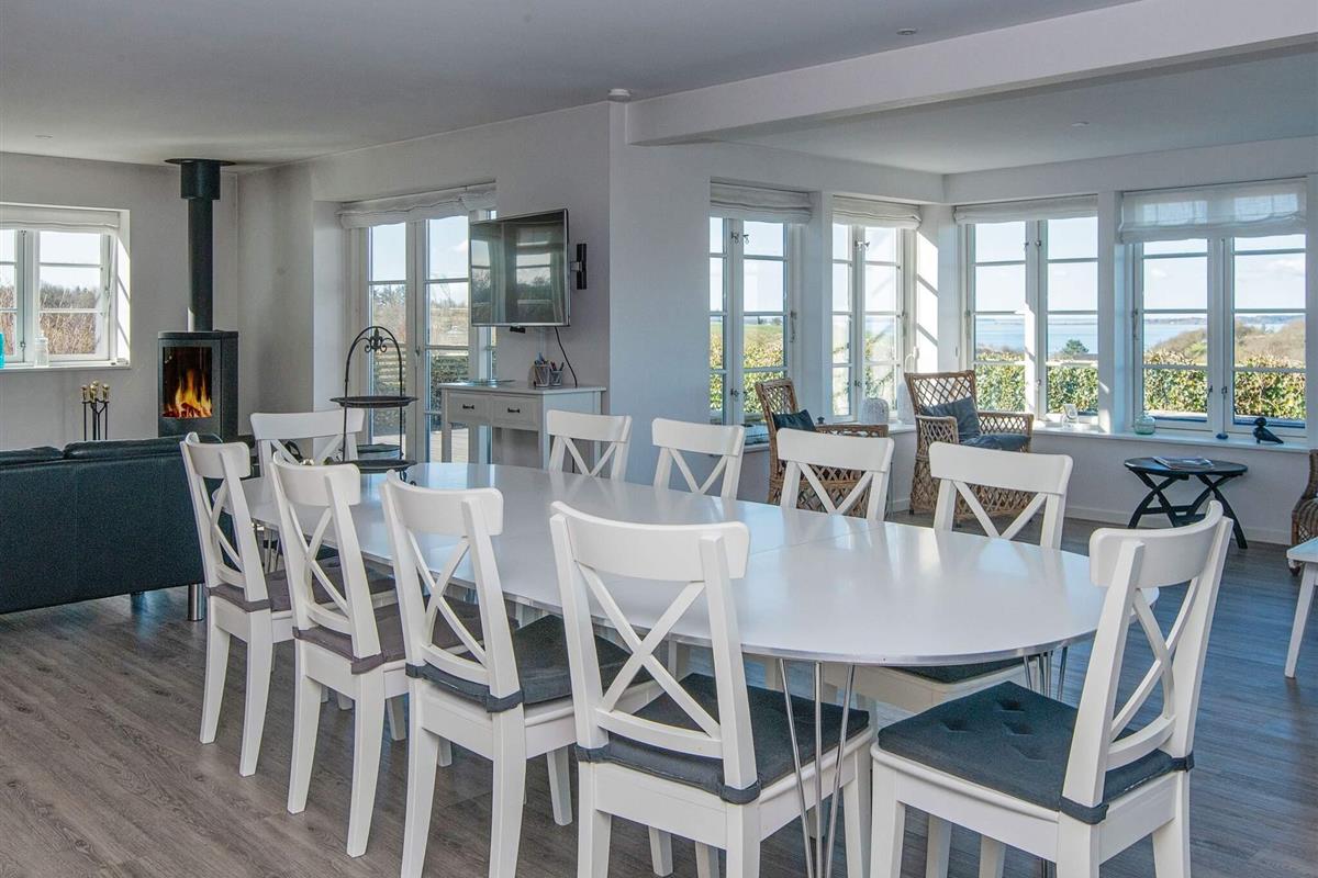 Hochwertiges zweistöckiges Ferienhaus mit Liebe zum Detail und Panoramablick auf die Landschaft und fantastischen Fjordblick sowohl drinnen als auch draußen. Das Haus liegt nur ca. 500 Meter vom Fjord entfernt, es gibt jedoch keinen direkten Zugang zum Strand vom Grundstück aus. Das Haus ist ein Niedrigenergiehaus, d. h., es ist gut isoliert und verfügt über eine Zentralheizung. Vor dem Haus befindet sich ein ca. 4000 km2 großes Grundstück mit Zugang zu einer Sitzgruppe mit Tisch und Bank (ca. 400 Meter vom Haus entfernt) mit Panoramablick auf den Limfjord. Es ist auch möglich, Rehe, Hasen usw. vor dem Haus zu sehen. Das gesamte Haus ist hell und einladend und aus den besten Materialien gebaut. Erdgeschoss: Offene Küche mit angrenzendem Esszimmer und Wohnzimmer mit Schlafbereich. Das Wohnzimmer bietet gemütliche Möbel, kostenloses Internet, Flachbildfernseher mit dänischen und internationalen Kanälen, darunter TV2 und ZDF. Es gibt einen Holzofen. Die Küche ist hochwertig und gut ausgestattet mit Cerankochfeld, amerikanischem Kühlschrank, amerikanischem Gefrierschrank mit 200 Litern Gefriervolumen, Wasserhahn mit 100 Grad heißem Wasser, separatem Backofen mit Grill, Dunstabzugshaube, Mikrowelle und Kaffeemaschine. Badezimmer mit Dusche. Im Haus befindet sich eine zentrale Staubsaugeranlage. Im Haus rechts befinden sich Trockner und Waschmaschine, Gasgrill und ein Platz zum Fischausnehmen. Das Gebäude links vom Haupteingang ist ein Privathaus. Im Erdgeschoss befindet sich zusätzlich eine große Holzterrasse vor Wohnzimmer und Küche. Obergeschoss: 3 Schlafzimmer, eines mit Doppelbett und Einzelbett, eines mit Doppelbett, ein Durchgangszimmer mit Doppelbett und ein kleines Einzelzimmer mit Einzelbett. Im Obergeschoss befindet sich ein Wohn-/Aufenthaltsraum mit direktem Zugang zu einem großen Balkon mit Panoramablick in die Landschaft und fantastischem Blick auf den Fjord. Badezimmer mit Dusche, Badewanne und Whirlpool für 2 Personen. Ein Haus für alle Jahreszeiten, das man erlebt haben muss. Nicht an Jugendgruppen oder Gewerbetreibende vermietbar.