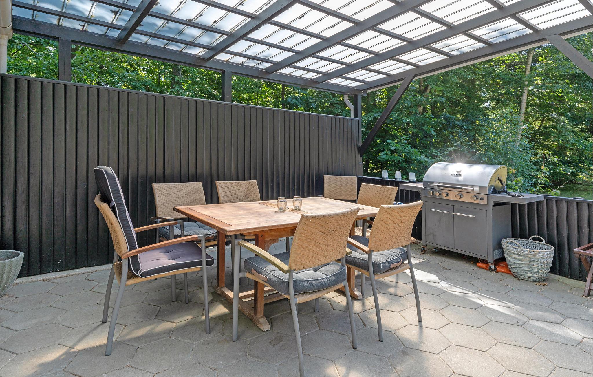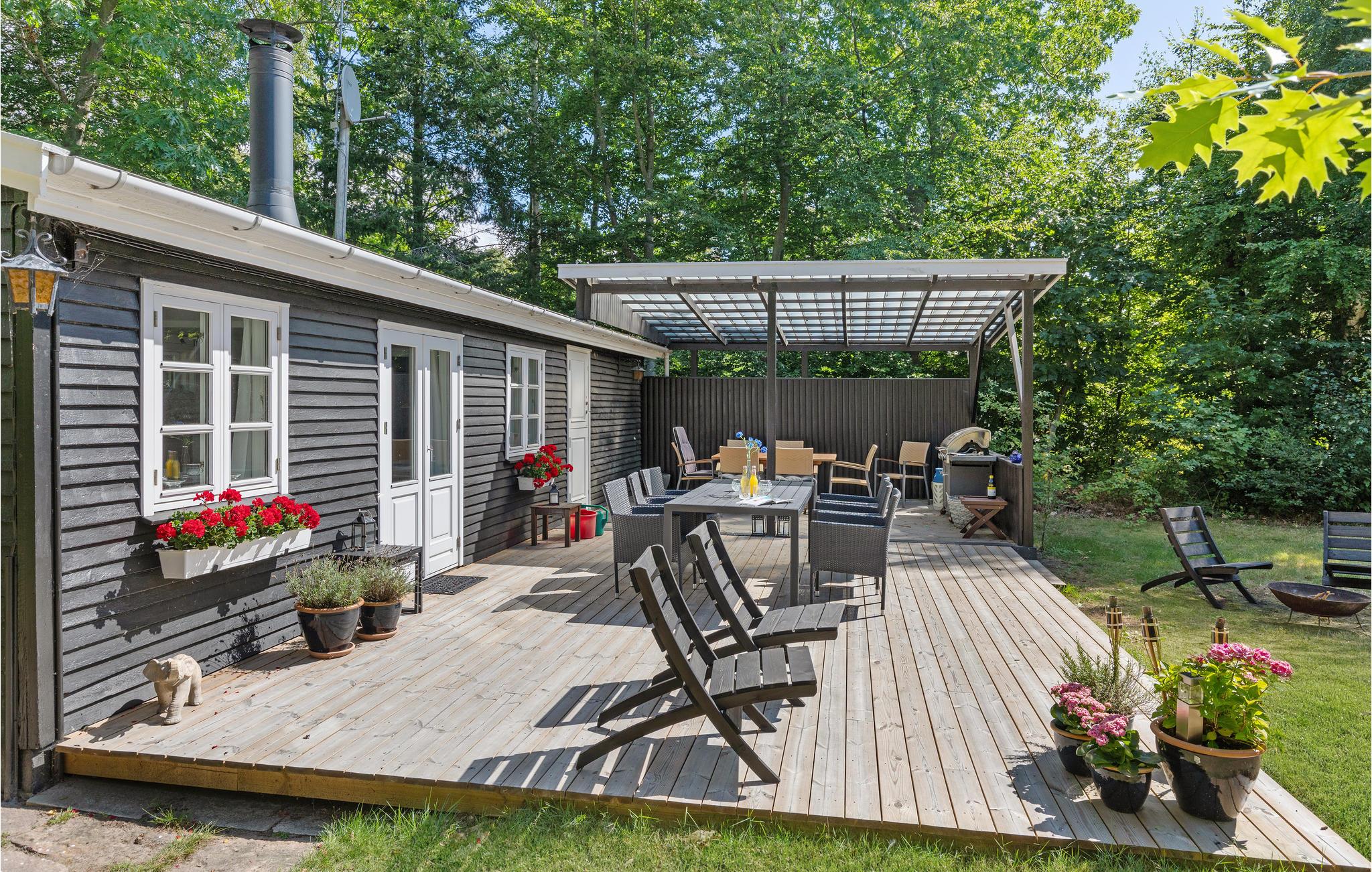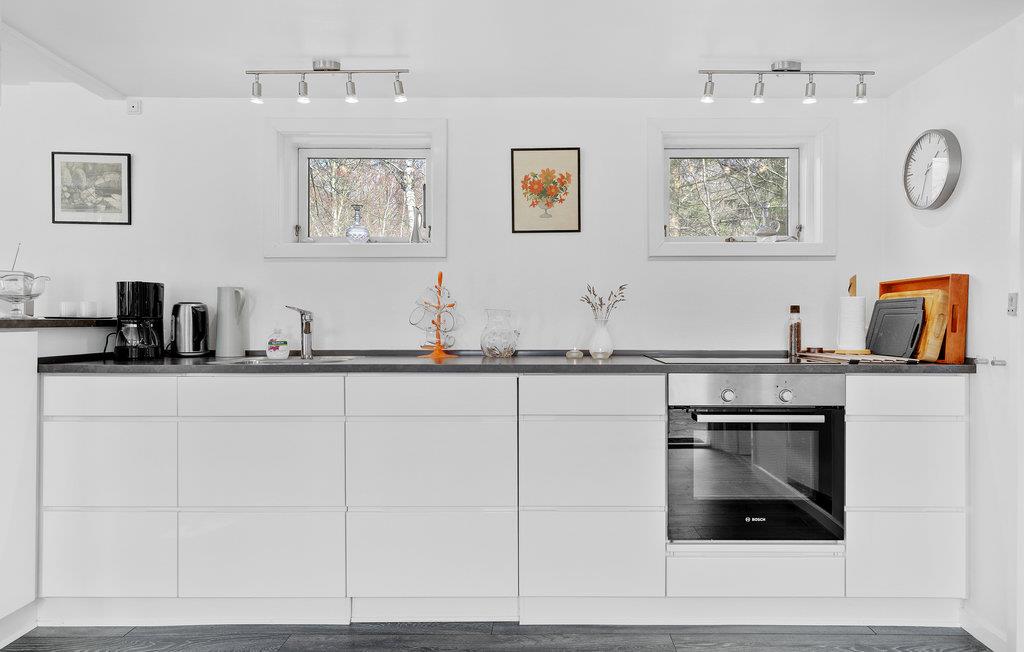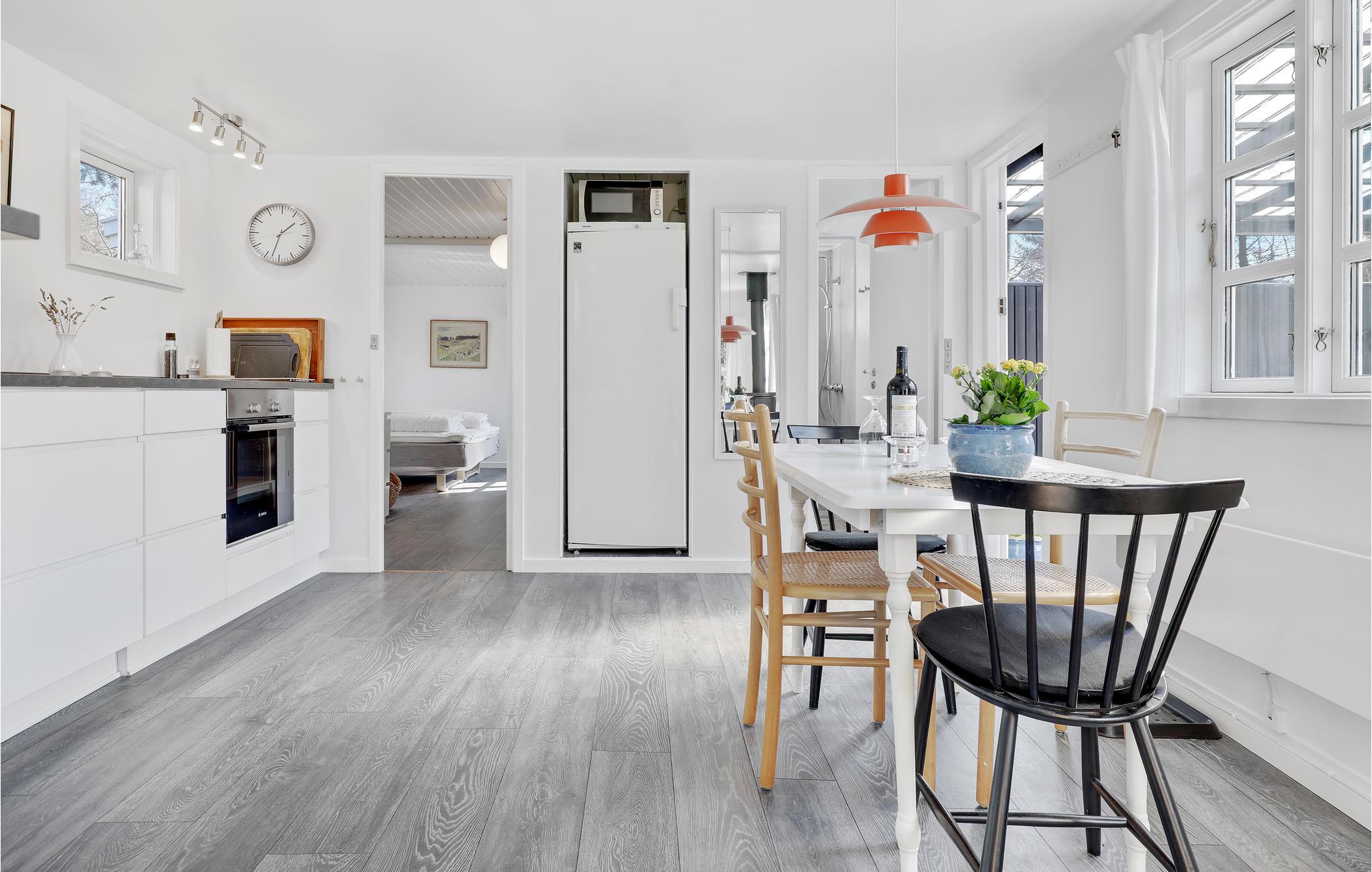 De keuken is ruim, in de woonkamer nodigt de bank uit tot ontspanning en hier kunt u ook het gratis internet goed ontvangen. De slaapkamer is ook lekker groot. Mooie badkamer met vloerverwarming. Het terras voor de woonkamer is gedeeltelijk betegeld en overdekt, ingericht met tuinmeubelen en barbecue. Tussen de aanbouw en de carport is in 2021 ook een terras gebouwd, een heerlijke plek om 's ochtends je koffie te drinken. Er is een grote trampoline in de tuin. Een slaapkamer en een moderne badkamer zijn te vinden in het bijgebouw, waardoor het vakantiehuis ideaal is voor 2 koppels of een gezin met tieners. Vanuit het goed onderhouden vakantiehuis brengt een korte wandeling u naar het zandstrand. Als u van sport houdt, is het gebied geweldig om te joggen, fietsen en wandelen terwijl u geniet van de prachtige natuur. Een fietspad gaat helemaal naar Rønne, waar u kunt wandelen, musea kunt bekijken en cafés kunt bezoeken. Er is een 18-holes golfbaan op 3 km van het vakantiehuis.