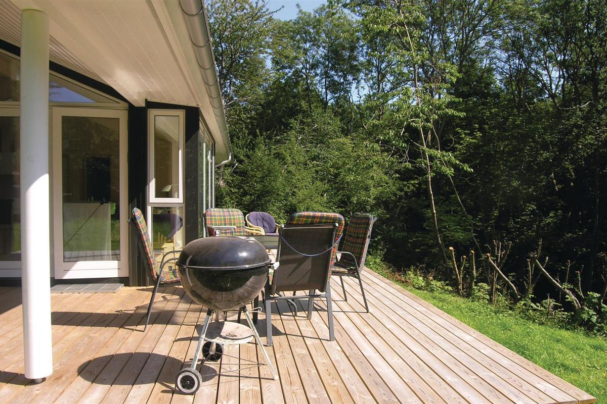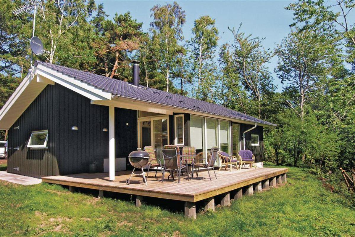 Modern en licht vakantiehuis nabij bos en strand in Rønne, met houtkachel en terras voor ontspannen zomerse avonden.